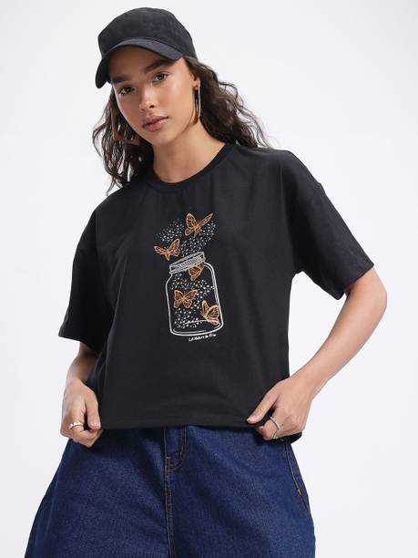 Opt for a bolder look with these black T-shirts for women. If you are looking for an all-in-one tee, then a black coloured tee is your perfect choice. They can be your go-to option for various occasions, and they pair with almost any outfit. You can choose from a variety of new themes and patterns, sleeve types, neck types, and many more. Add these latest black T-shirts for women to your casual collection, and never miss out on any impromptu casual dates and outings. You can pair this black T-shirt with skinny or ripped jeans, canvas, and a cross-body bag for an elegantly chic and bold look. If you are a traveller, black and other darker shades can enhance your travelling experience by camouflaging any stains and debris. They can also be your rescue and base T-shirt during special occasions and confusing times. You can choose from minimalistic solid plain black t-shirts or printed ones that best suit your tastes. You can also transform a simple black T-shirt into a cute crop top with simple knots and tucks. You can buy black t-shirts for women online at the best price and offer from brands such as GIRLS SHOPPIE, Young trendz, Kook N Keech, BEWAKOOF, FLEXIMAA, and many more. The information you are reading has been last updated on 19-Feb-26.