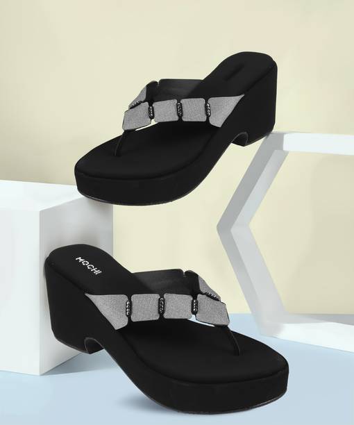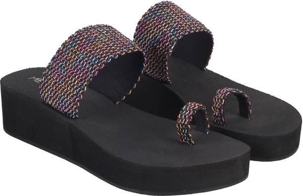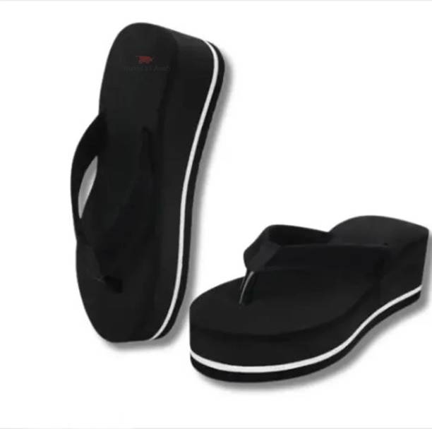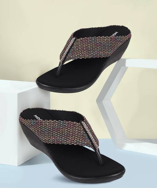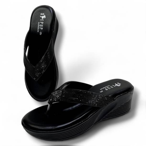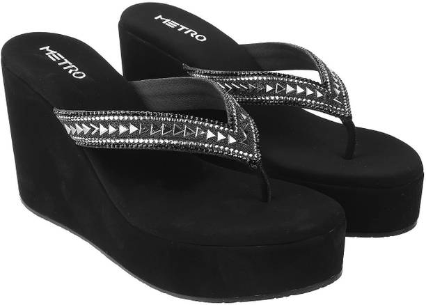 3. Opt for thong-style wedges to get the comfort of flip flops or chappals. You can comfortably and stylishly sport these wedges to the beach or your country club’s swimming pool. You can wear a black crop top and white denim pants for this occasion.