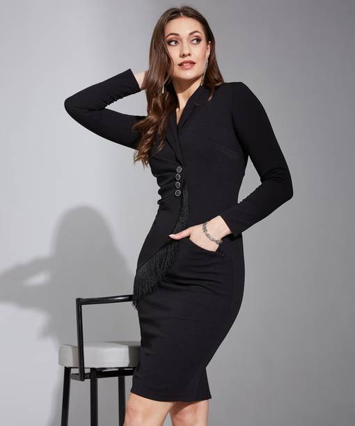 Look stunning and elegant in a blazer dress. Your dress can tell a lot about your personality. A dress in blazer style is ideal as formal or office clothing for women. These dresses are available in a variety of fabrics, patterns, and styles. You can choose a double-breasted, knee-length, black dress in polyester-spandex fabric for a meeting to make an impression. These dresses are comfortable to wear for long office hours. The large buttoned broad collar can add a touch of style to your attire. You can opt for the A-Line style with a straight hemline for that extra elegant appeal. You can also choose the latest blazer dress with an overlapping front and a matching belt. You can go for a full-length sleeve in the same fabric as the dress, or you can choose one with a mesh sleeve. Blazer dresses are available online from popular brands such as MWB, Sassafras, Aurelia, and more. Pair it with a chic bag and stylish footwear to complete your look. Buy your dresses online and take the next formal event by storm with your effortless grace and high taste in style. Add these dresses to your shopping cart for doorstep delivery and refresh your wardrobe.The information you are reading has been last updated on 11-Jan-26.