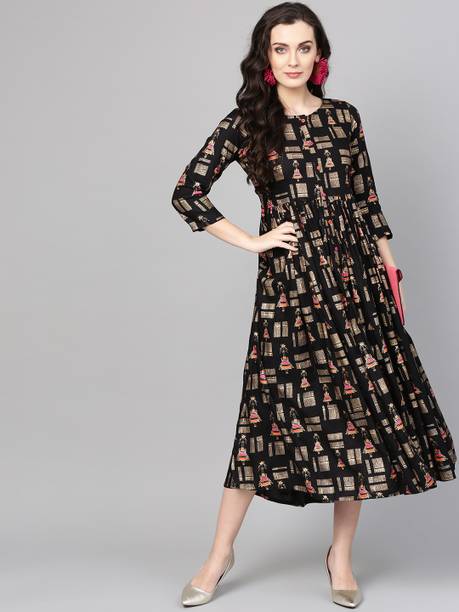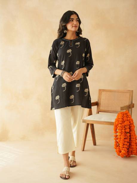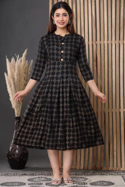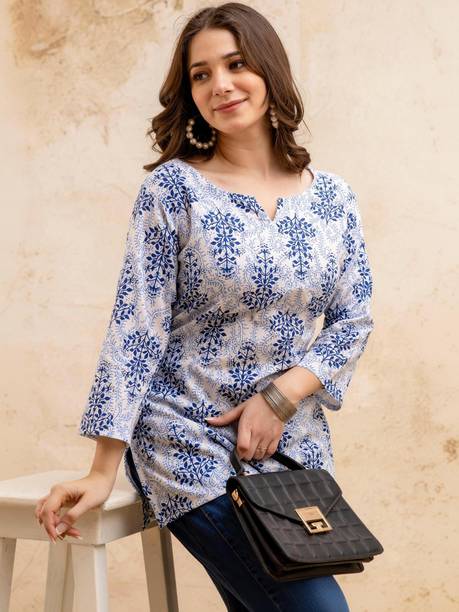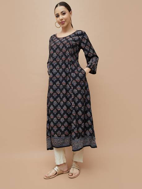 Block print kurtas are a favourite attire as they can be worn in any weather and occasion. The block printing process involves transferring ink or dye from a block of stone or wooden carving to the clothing, which can be done either by hand or machine. They are designed to be comfortable and stylish and are made from various fabrics like cotton, rayon, silk, etc. Cotton, linen, and modal are breathable fabrics worn during warmer seasons, while materials like georgettes, jacquards, polyester etc., are apt for colder months. These ethnic wears for women have various sleeve types and kurta lengths like short, long, and below the knee. For occasions like festivals and parties, you can opt for the long ones or Anarkalis that come with embellishments or applique work to stand out in the crowd. The mid-level and below-knee kurtas with minimal designs or embroidery can work in a professional setting. Explore the wide range of new and trending designs at the best prices from brands like Momina Export, Harivastra, Akshara Fashion, Metro-Fashion, Janakdulari Creation, and many more. Available in sizes ranging from 2XS to 7XL, they are suited for any body type, and you can choose them based on your needs and preferences. Check out the latest collection of block print kurtas online and upgrade your wardrobe collection.