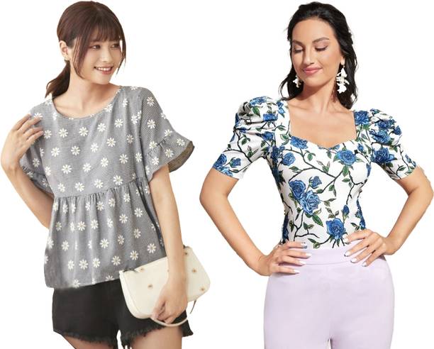Blouson summer tops are comfortable garments fitted at the waist with an elastic band where the extra fabric gathers to give it a blouse-like finish. They are popular because of their multiple comfort points. If you worry too much about blotting and restrict yourself while eating out, these blouson tops will be your first choice henceforth. Because the extra fabric gathers at the hem, sitting at the waist length, these tops effectively hide any visible bloating. If you like the tucked in look, but don't like shoving extra fabric down your pants or skirts in fear of a bulky hip, pair these up with a blouson next time. No extra fabric, no bulky stomach or hip, you'll get a perfect tucked in look without these hassles. It is advisable to not wear high-rise pants or A-line skirts with these tops as they might not complement the finished silhouette. Instead, you can pair them up with medium to low-rise pants, pencil and midi skirts, or slacks. There are both casual and formal options available among blouson summer tops. Some of these tops also come with extra fabric below the elastic hem, covering the hips. Various patterns, neck, and sleeve styles are offered by brands like One Amore, Eyebogler, Rare, Oomph!, and Clothzy. You can order blouson summer tops online. The information you are reading has been last updated on 01-Mar-26.