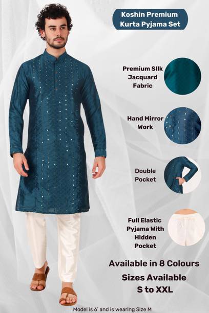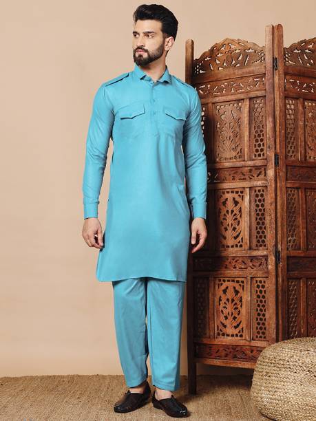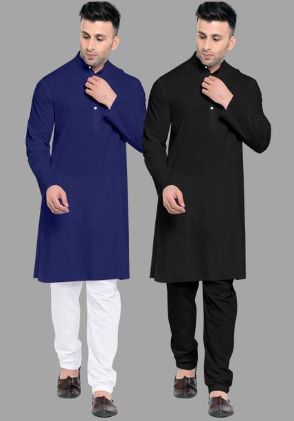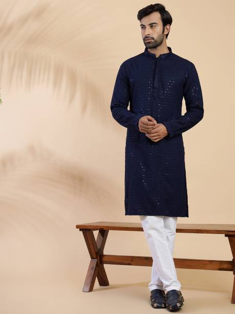 Look stylish and cool this festive season with a blue kurta pajama set. This ethnic combo for men is a classic attire. It can be worn for all occasions, whether it’s a festival, celebration, or family function. You can also gift these sets to your loved ones. Made of blended cotton, this comfortable set can be worn in all seasons. You can also opt for other materials like silk, cotton silk, and more. Choose silk for a rich look for functions and cotton for comfort and everyday wear. If the typical dark blue colour is not your choice, you can check out the different shades of blue. Pair the kurtas with suitable footwear like mojaris, jutties, and sandals to complete the look. You can go for neck designs like a collar, round neck or angrakha. Choose from different lengths of the kurta according to your preferences. You can shop from multiple kurta styles like a pathani, dhoti kurta, churidar set, and more. Brands like AJJO MAJJO, ARMAAN ETHNIC, Jompers, BOSKO, and BENSTOKE offer stylish blue kurta pajama sets for men. Shop for the latest blue kurta pajamas from the e-store and get them delivered to your doorstep.The information you are reading has been last updated on 18-Nov-25.