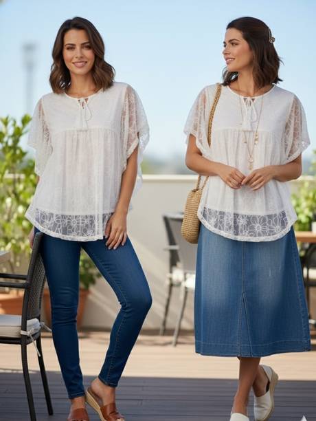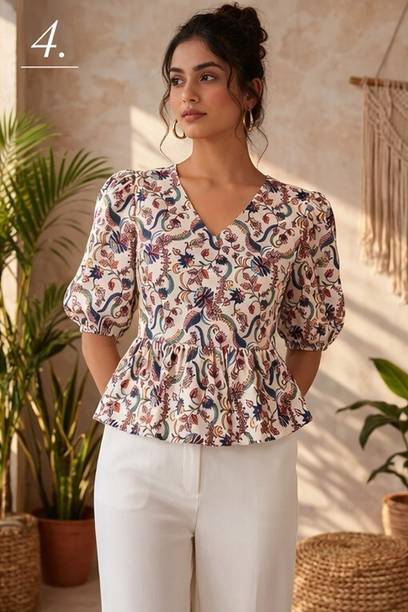 Bring out the hippie in you with the Bohemian tops. You can choose from different choices of neck types, sleeve styles, sleeve lengths, fits, fabrics, patterns, colours, packs, and more. Wear these Bohemian tops to your casual outings. These tops suit women of all ages well and provide comfort throughout the day. Variations like puff line sleeve, V neckline, bottlenecks, tassels, tank style, cami top, layered clothing style, balloon sleeves, tie-ups, high low layers, and others will enhance your style quotient. You can wear them to your casual meetings and parties and accessorise with chunky jewellery and sunglasses. You can wear them with almost all types of bottom wear. You can explore the latest Bohemian tops (new) collection from brands like PANNKH, creafina, QUIERO, Knotty and many more and avail of exciting offers online. You can scroll, search, and compare tops from different brands and get tops at the best price from the comfort of your home. What are you waiting for? Purchase your selected tops online and get ready to step into the world of fashion without much effort. Place your order online and get these tops delivered to your door without hassles. The information you are reading has been last updated on 23-Mar-26.