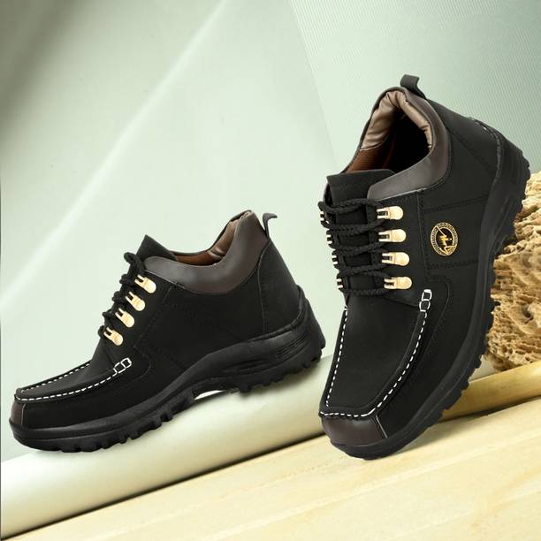 Do you love the look of boots? Check out some amazing boots for men that can satisfy your lookout for these amazing types of shoes. They are perfect for hiking, casual outdoor activities, sports, formal events, marriage ceremonies and more. You can get the latest boots for men in designs like boat shoes, brogues, casuals, mocassins, loafers, corporate casuals, dancing shoes, slip-on sneakers, and more. Their comfortable build and fabrics make them the ultimate footwear for men who love staying active outdoors. You can choose from patent leather, synthetic leather, suede leather, genuine leather, mesh, cotton textile, and many other materials that can protect your ankles and feet from within. These shoes come with sturdy laces for lace-up closures. As for slip-ons, you can comfortably slip in such boots to take on your daily outdoor chores. Their solid heel structure makes them perfect for walking, running, and strolling over all types of terrains. You can opt for ankle boots, adjustable sneakers, chunky derby, suede boots, versatile hiking boots, segmented sole trainers, colour wash sneakers, etc. You can get these pairs of shoes in Indian/UK sizes two to 13.5. For the best online boots for men collection options, check out brands like ROYAL ENFIELD, Para Commando, bacca bucci, METRO SHOES, and LIBERTY. The information you are reading has been last updated on 12-Mar-26.