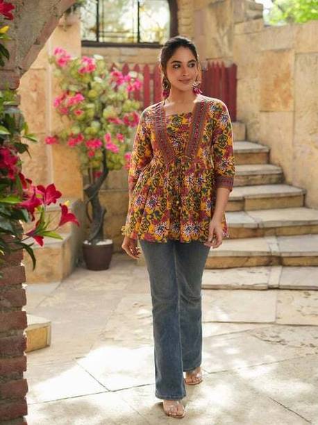Online stores have a plethora of nature-inspired printed tops in several designs, patterns, and colors. You can purchase a regular top, crop top, peplum top, round neck top, ruffle top, kurta and palazzo set, high-low top, blouson top, tank top, kaftan top, and more. These tops are perfect for casual wear. You can also choose to go for tops that come with flowery prints as well. Pair these tops with jeggings, jeans, or trousers, and a pair of ladies sandals to nail the casual look. A dark- or light-colored sling bag will also look good with this attire. You can also pair these tops with shorts or mini skirts and a pair of sneakers for the perfect summer look. Also, a pair of oversized sunglasses will help complete the summer look. So, what are you waiting for? Buy these pretty tops online at attractive prices right away!