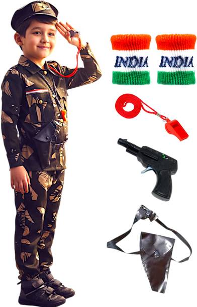 Fancy dresses for boys can have many themes. There are fancy dresses that have themes based around our country’s defence troops. You can find khaki police uniforms, as well as camouflage army, themed costumes. If you are interested in fancy dresses of these types, take a look at these products - Beekay Police costumes and Beekay Army costumes. If your child is going to take part in a fancy dress competition and play the role of a political or historical figure, buy them fancy dresses that follow the ethnic theme.