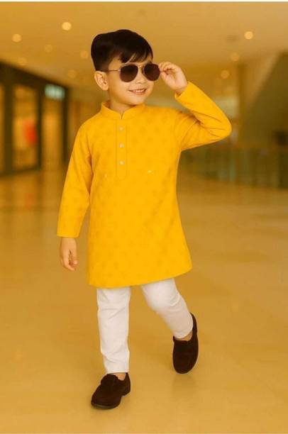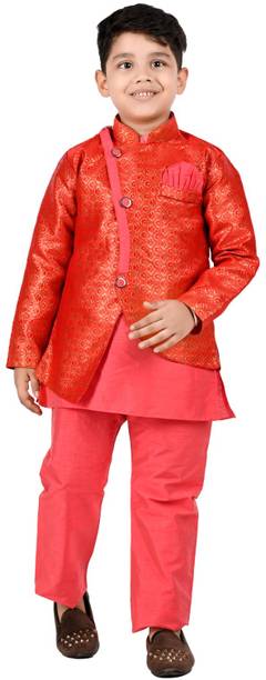 From the wide selection of dresses for kids, you can easily find a suitable clothing option for your child, right from the comfort of your home. You can pair these clothing options with ethnic footwear and jewellery to create a stylish look for your tiny tots. Matching stoles and waistcoats are also provided with many of these clothes, to enhance their appearance of the attire. You can also layer these clothes with stylish ethnic jackets, such as a Nehru coat, to elevate the overall look of the garment. Select the styles you like and shop for boys’ dresses online, and enjoy convenient home delivery services.