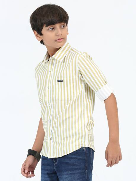 Style up your little one in a well-groomed look by taking your pick from the collection of boys’ shirts available in attractive themes. You will find patterns like striped, embellished, floral print, dyed, military camouflage, woven design, washed, ethnic motifs, etc, in the shirts for boys. Scroll through the different size options available for boys of different age groups and select a variety of them online by using the size chart provided. Additionally, boxy, slim, super slim, tailored, and regular are the different fit options to choose from based on the build of the kid. Whether you have to buy clothing for casual use or formal wear, you will find some of the best themes in the latest patterns. Corduroy, denim, nylon, pure cotton, lycra blend, lyocell, viscose rayon, etc., are some of the fabric varieties to consider. The prices of the shirts vary across the collection. You may dress your kid in a printed formal shirt and jeans for a semi-formal or party look. Brands like Gini & Jony, Indian Terrain, Flying Machine, Hopscotch, Allen Solly, etc., have a trending collection of boys’ shirts. Buy new apparel through online shopping for easy doorstep delivery. The information you are reading has been last updated on 21-Jan-26.