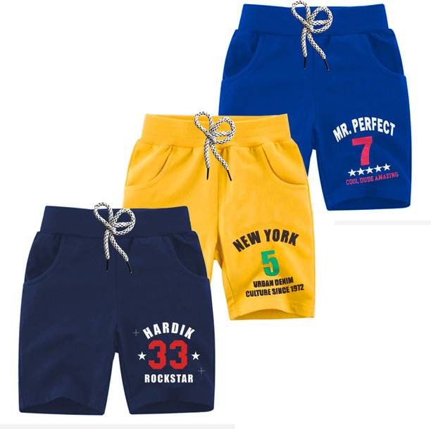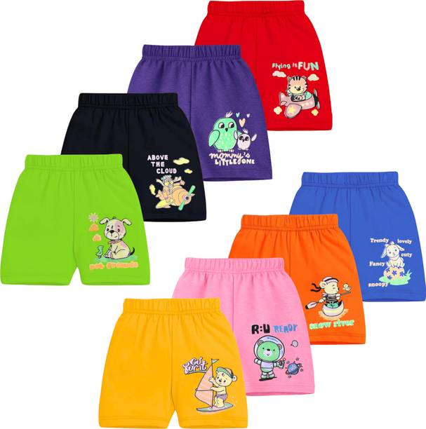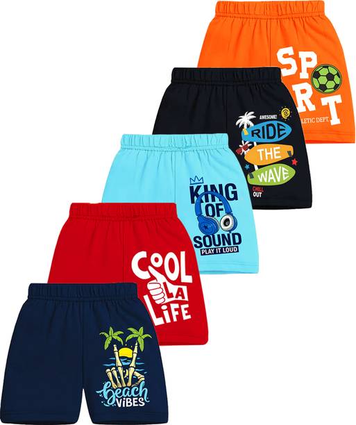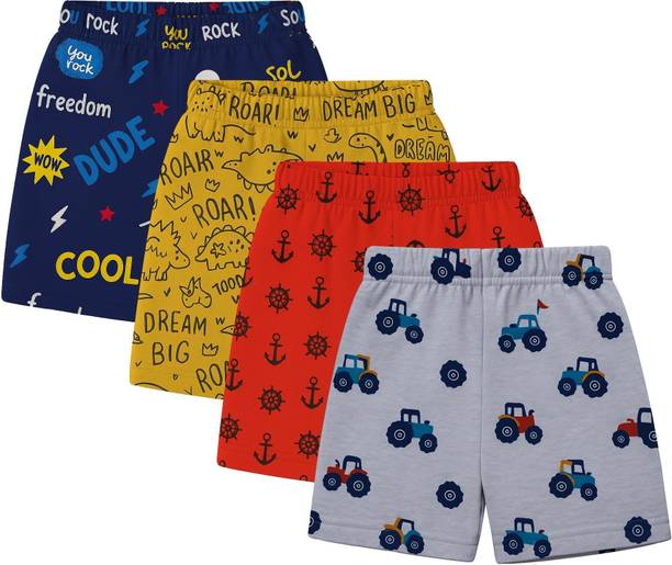 You will find a wide range of shorts for boys to choose from. You can choose from various fabrics such as cotton tencel blend, viscose, poly georgette, acrylic blend, pure linen, polyester viscose blend, and more. You can buy shorts for babies, toddlers, kids, and teenagers online. Organic cotton blends and pure cotton shorts are very comfortable for kids. Shorts are suitable for daily wear; whether kids are going to park or riding the bicycle with their gang, playing indoors, or visiting a friend, shorts paired with a t-shirt and comfortable footwear is an accepted dress code. You can choose denim shorts for casual wear for a stylish look and cotton shorts for comfortable nightwear. Buy shorts featuring cartoon prints like Angry Birds, Chhota Bheem, Ben 10, among others, to bring a smile to your kids' faces. Choose from solid, checkered, printed, colour-blocked, and striped designs for shorts. Shorts are available for specialised usages such as sports, swimming, running, cycling, and more. There are options for baggies, bermudas, and nightwear shorts available. The Boo Boo Club makes cute baby pants for toddlers. They feature vibrant designs printed with toxin-free chemicals. The fabric is bio-washed, making it suitable for little kids and babies to wear. The popular brand Gini & Jony offer a wide assortment of boys shorts for small kids. Brands like Fashionate World, Tripr, Wyatt have a wide range of cotton shorts. Shorts made with polyester fabric are very comfortable during the winters, while cotton shorts are preferred for summers. Another winter-friendly fabric for boys' shorts is acrylic. You can dress your boy in shorts for picnics and travel as well.