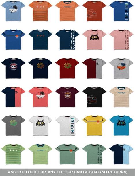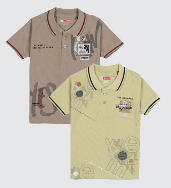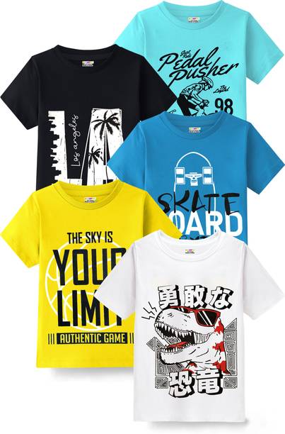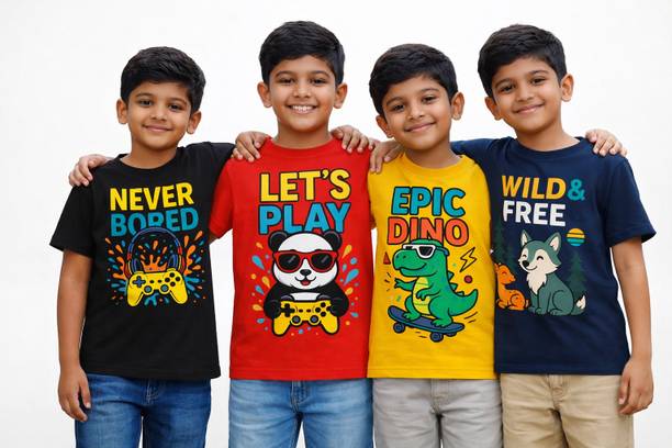 Boys’ T-shirts with colourful themes and captions are great options for kids of all ages. There are T-shirts available for boys in various patterns, colour combinations, neck types, sleeve styles, themes, fabric types, etc. Check out the different kinds of characters available, like Bob Builder, Simpson, SpongeBob, Captain Marvel, Chhota Bheem, and various others. Whether it is party wear, casual wear, or sportswear, you will find T-shirts that match multiple occasions. You can choose apparel for your kid from the plethora of options available online. Patterns like chequered, animal print, tie and dye, striped, typography, self-design, cartoon, etc., are available to choose from. Select T-shirts based on the fabric options like pure cotton, cotton blend, wool blend, lycra blend, organic cotton, etc. Pair a T-shirt with jeans and sneakers for a stylish casual look. Neck types such as polo neck, henley neck, round, hooded, high, crew, and others are available online to meet your boy's fashion needs. Buy boys’ T-shirts online from brands like Jump Cuts, Trendy World, Fit N Fame, Lion King, Luke and Lilly, etc. Get your hands on stylish T-shirts available in myriad designs and colour options to make your little one look fashionable. Price list last updated on 16-Jan-26.