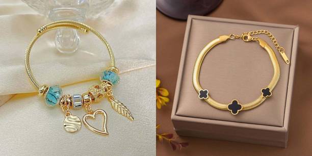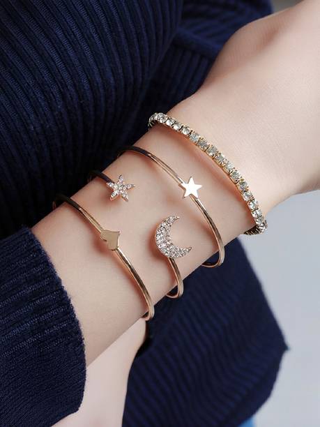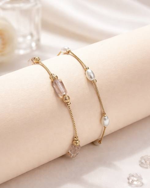 Take your style to the next level with fashionable and cool bracelets. These simple accessories can transform your look by adding a touch of style and trend factor to your ensemble. You can wear them with your casual everyday outfits or for special events like parties and get-togethers to give your look an edge. The wide variety of styles of these jewellery options available online can help you easily find styles that match your preferences. There are bracelets for men that feature beaded, braided, metallic, and belted designs. Ladies can choose from options that offer beads, charms, attractive danglers, gemstones, and other ornamental styles. You can wear such types of armlets with your casual and party attire to make your look stand out. Metallic options can be ideal for wearing on a daily basis for both men and women. These styles can add a charming and elegant touch to your everyday looks with their subtle yet alluring designs. You can choose them from brands such as Syga, Yellow Chimes, Impression, Silver Shoppee, YouBella, and more. To find styles that you would like to wear, you can browse through the vast collection offered here. So, go ahead and select the options you like the best and shop for bracelets online.