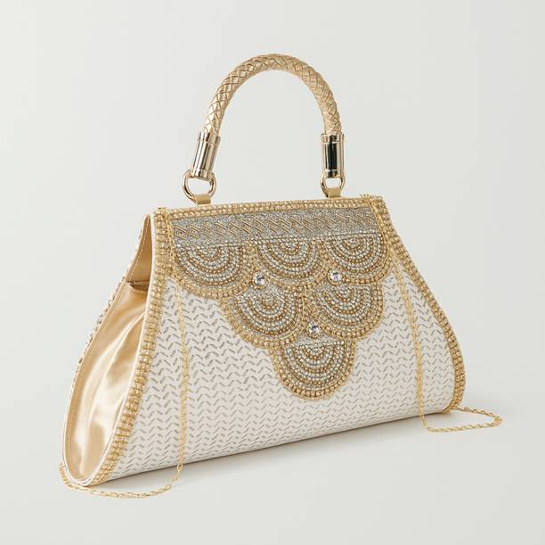 Bridal handbags are an integral part of a brides’ ensemble. Carrying an elegant handbag can not only elevate your entire look but serve the much-needed purpose of holding all your necessities like a mobile phone or lipsticks. These handbags are available in various patterns, ranging from a simple classy handbag to one adorning embellishments. Brides who prefer sober and subtle designs can opt for pastel handbags with minimal designs complementing their overall look. Gold and silver handbags are universally loved and adored as they can be teamed with outfits of any colour. Brides who prefer intricate designs, handbags with stonework, pearls, beads, embroideries, and bright floral patterns will appeal to their taste. These handbags, however, are not just for brides. Any woman can carry a beautiful bridal handbag to any function or occasion as long as it complements her outfit. You can browse through the latest bridal handbag collection online from the finest brands like FOR THE BEAUTIFUL YOU, AILTINO, Toobacraft, LONGING TO BUY, Roy variety's, and many more. Add these adorable bridal clutches, potlis, and handbags to your collection to spruce up your fashion game. The information you are reading has been last updated on 28-Nov-25
