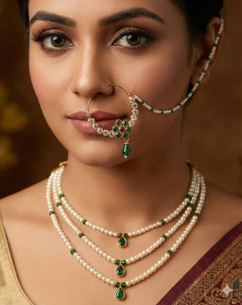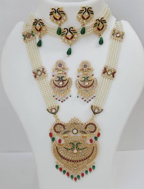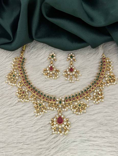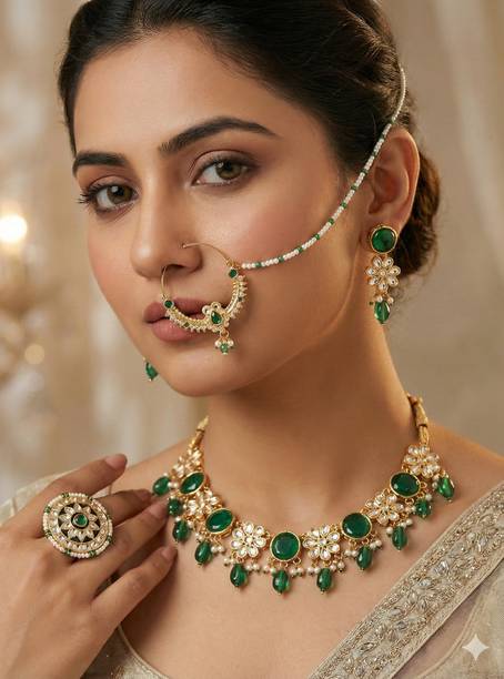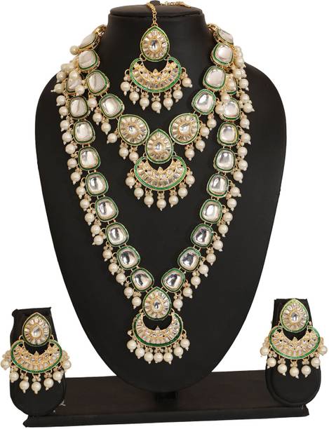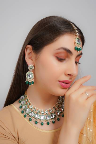 Kundan - One of the oldest forms of jewellery originating from the royal courts of Rajasthan and Gujarat, kundan jewellery is a traditional form of jewellery that involves gems that are bound in gold foils, holding the stones together. Also known as Jaipuri or Bikaneri jewellery, Kundan jewellery is colorful and rich, exuding tradition, culture and great craftsmanship. Kundan jewellery has rich history. Dating back to the Mughal Era, it remains a beautiful and popular part of the bridal sets trousseau. Buy Kundan jewellery from brands like Bling and Beads, Lucky jewellery, Shining jewellery and more.