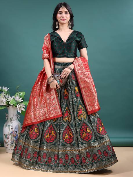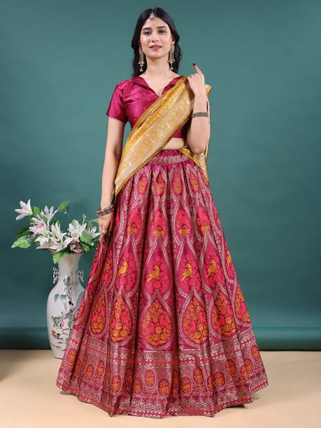 Draped in tradition and embellished with grace, a bridal lehenga is the epitome of elegance and magnificence. Moreover, for brides seeking to exude grace on their big day, nothing matches the timeless allure of a stunning wedding lehenga. From elaborate embroidery to luxury fabrics, every detail of this classic outfit is crafted thoughtfully, making it the ideal choice for brides-to-be who desire a captivating and memorable look. Whether you prefer classic motifs or contemporary embellishments, there's a lehenga for every bride-to-be. Also, with a keen eye for design, the extensive online collection effortlessly combines tradition with a modern flair, ensuring that you look effortlessly stylish and elegant on your wedding day. Furthermore, by shopping for a lehenga online, you can browse through the widest range, along with matching accessories like bangles, earrings, rings, purses, shoes, and more. Some of the brands offering exquisite bridal lehenga online are Rajshree Fashion Fab, Aadhyanta, Yozzby, Trijal Fab, Aatvi, and more.