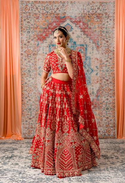 A wedding is a special occasion, and the memories are treasured in pictures and videos. Hence, it is essential that the bride and the groom are dressed to perfection for their special day. If you are looking for the perfect attire for the bride, you can browse to find the perfect bridal lehenga for (the) reception to mark the celebration. Check out the beautiful lehenga choli collection in rich fabrics and patterns. Browse through lehengas with heavy embroidery, embellishments, or applique work in colours that you love. Match the outfit with the groom’s sherwani or suit. Check out designs and prints in floral, paisley, or traditional motifs. Look out for the latest bridal lehenga for reception from brands like Ethista, FASHION BASKET, F Boutique, Eshami, Wellesta, and more. You can opt for semi-stitched lehengas that can be customised to give you the perfect fit. You can amp up your look by pairing it with matching jewellery and other accessories. You can shop for a bridal lehenga for reception online and focus on other chores that need your attention. What are you waiting for? Swipe and select the perfect trousseau from the comfort of your home. Browse through reviews and compare the prices to make an informed decision. You can place your order to have them delivered to your doorstep. The information you are reading has been last updated on 03-Oct-25.