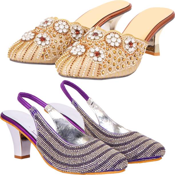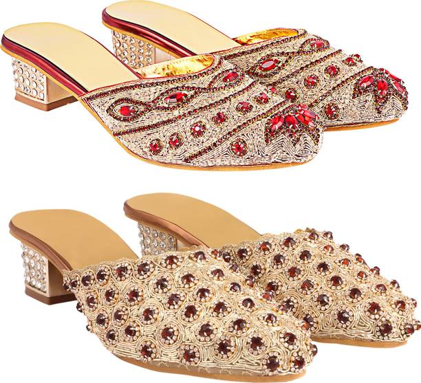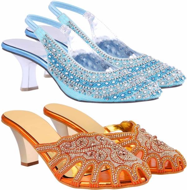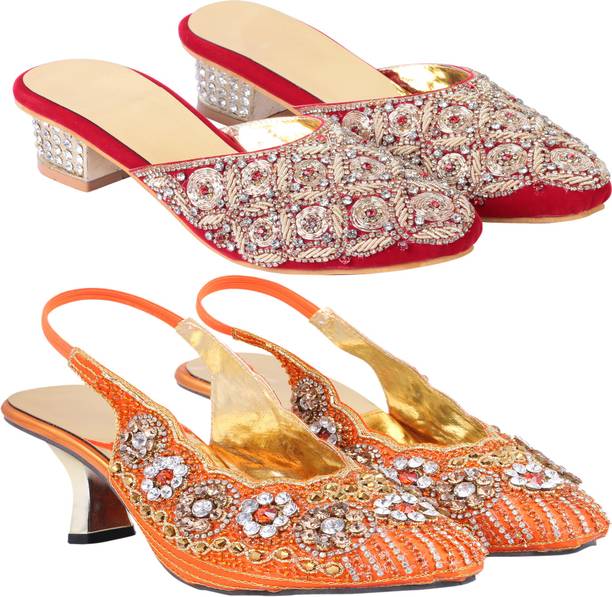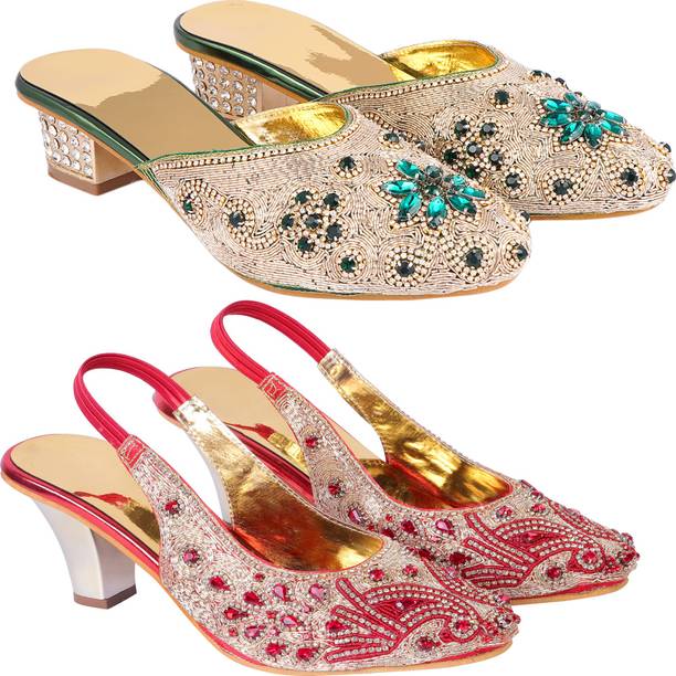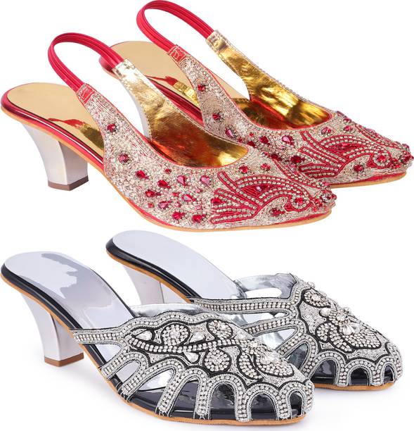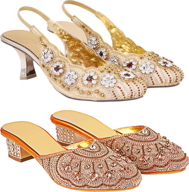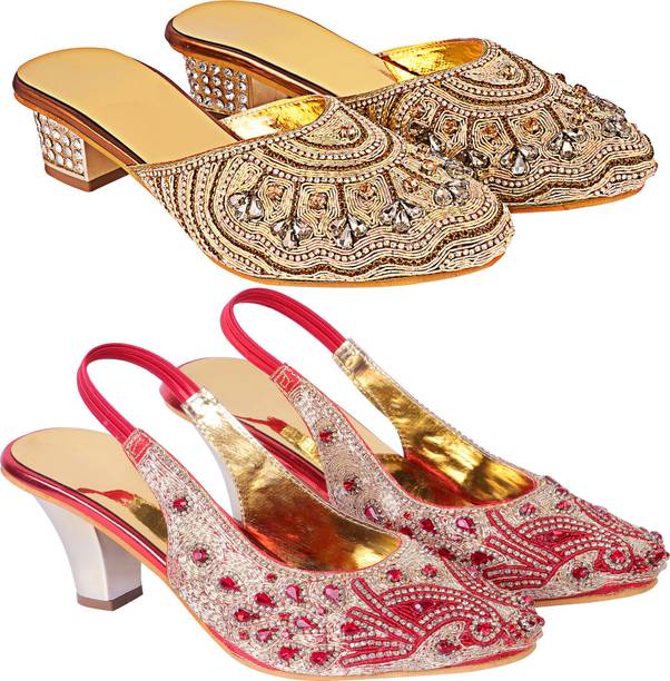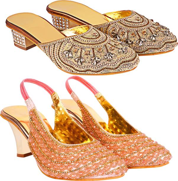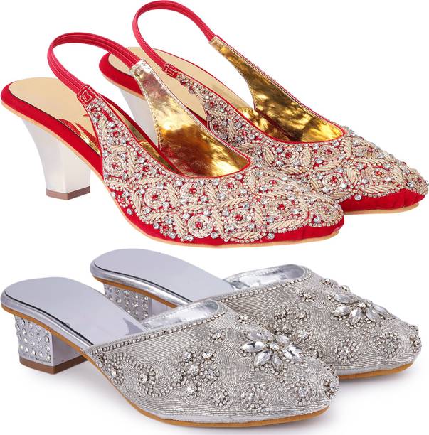 Building a wedding trousseau takes a lot of planning. You have to plan for the ensemble for every event and occasion for the big day that includes apparel, jewellery, accessories, wedding sandals for bride, and more. It is essential that you choose the right footwear as you might have to stand for long hours during the ceremonies and the reception. The footwear has to match with the outfit and be comfortable at the same time. Browse and choose from a variety of wedding sandals for bride available in a plethora of colours, designs, patterns, and styles for the big day. A pair of nude footwear will go well with most outfits without taking away the attention from your ensemble, while the golden and silver footwear will be appropriate with most dresses. Whether you prefer stilettos or wedges, flats or ballerinas, peep-toes or sandals, pumps or heels, you can always find matching footwear in a plethora of colours and styles for various wedding events and parties. Select the latest bridal wedding sandals from brands such as AlexaStar, GULMOHAR FASHION LIFE, Sparkle Collection, HoneyStep, Breezing Bird, and many more for your big day. You can shop from the comfort of your home for convenient doorstep delivery. The information you are reading has been last updated on 16-Dec-25.