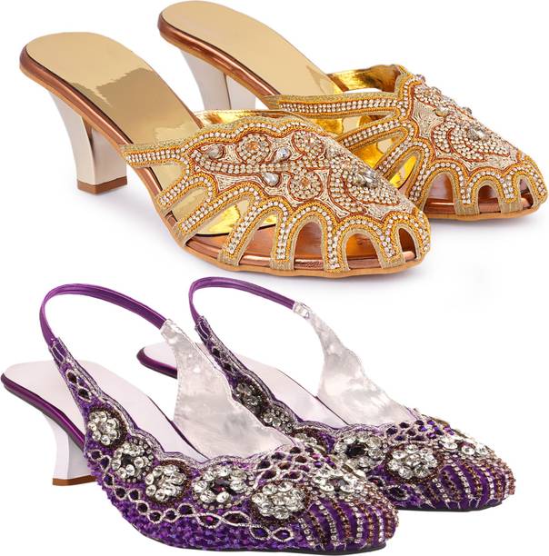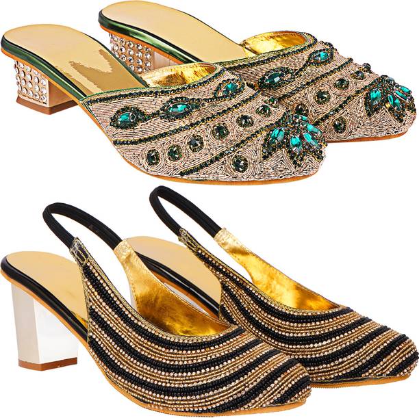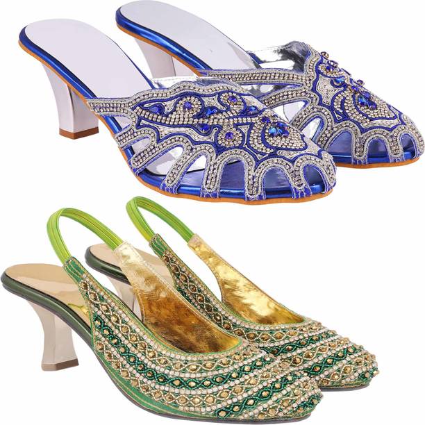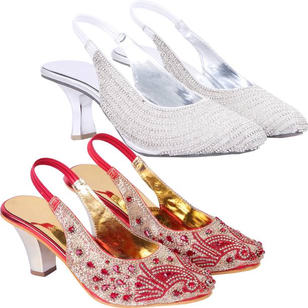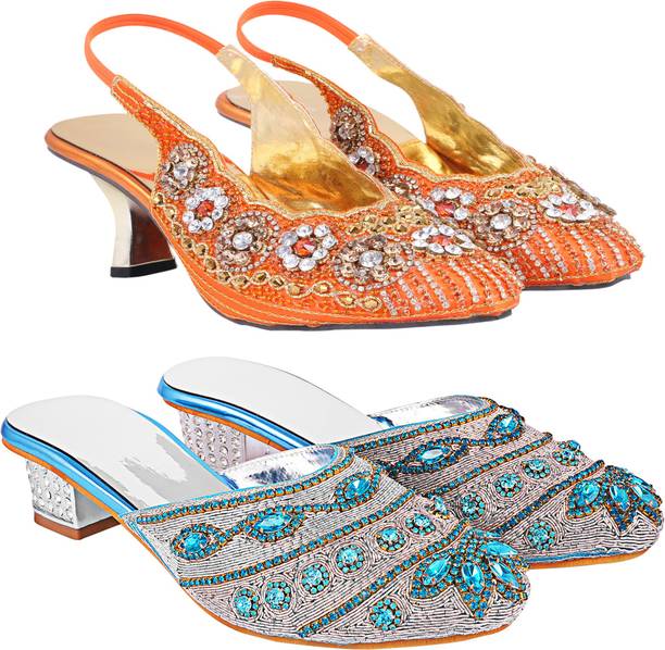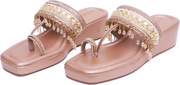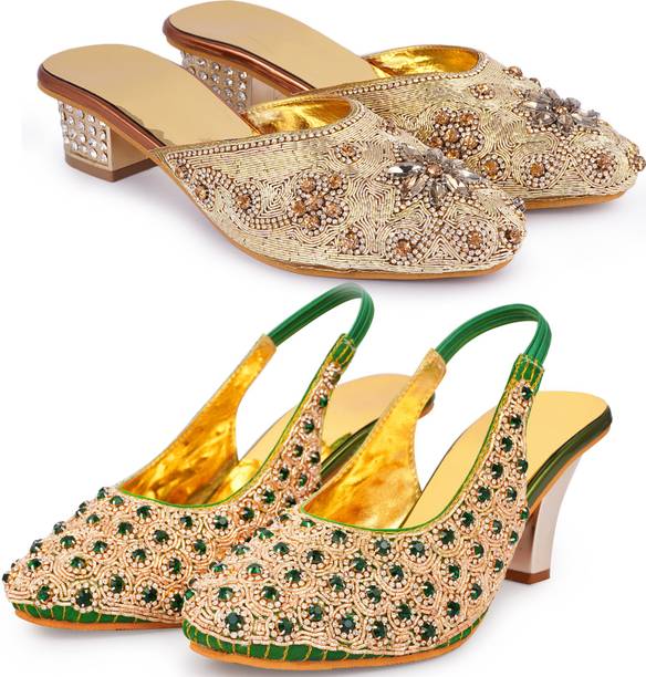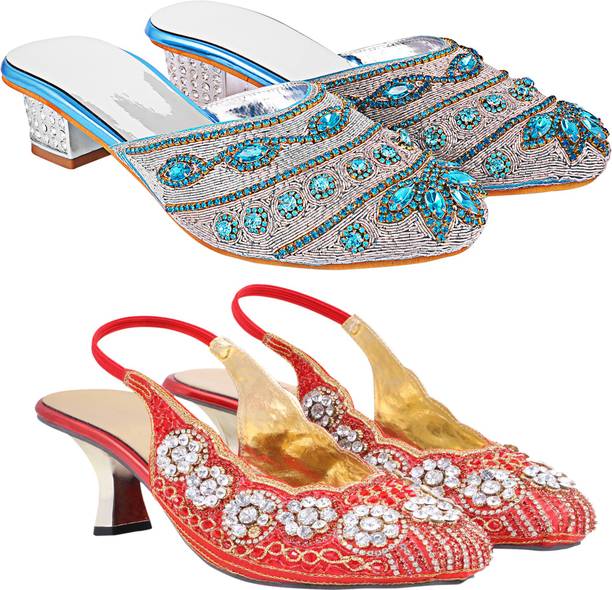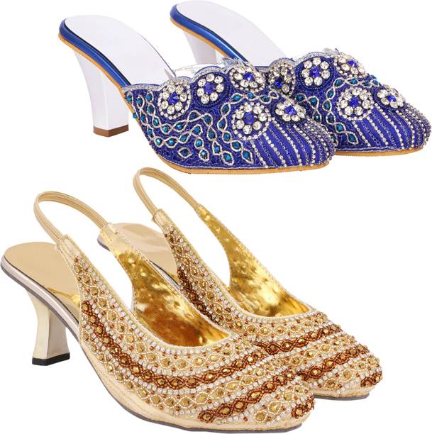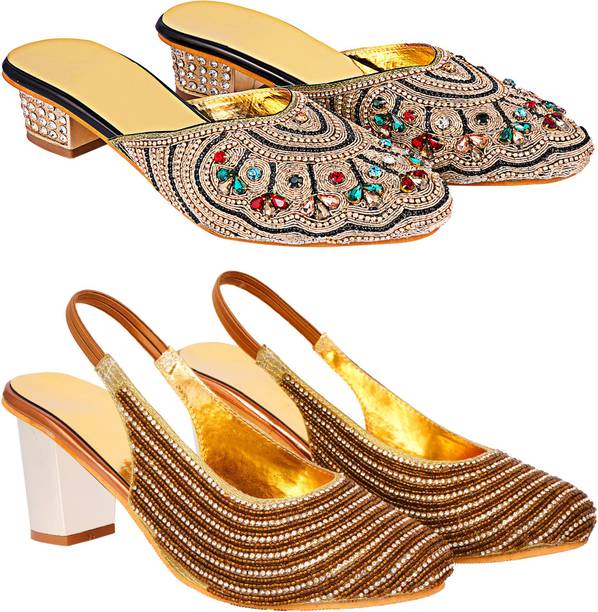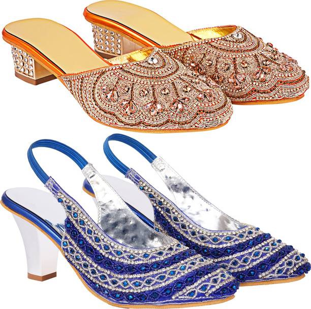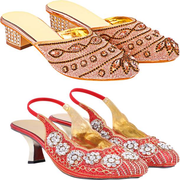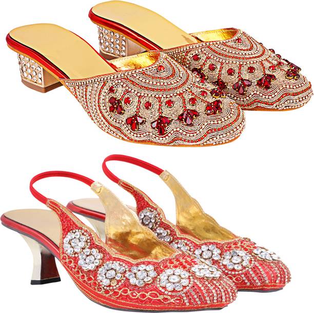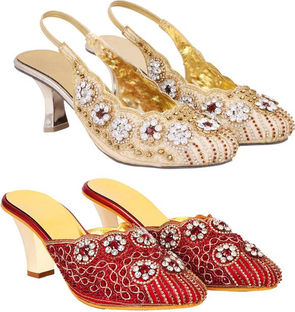 Building a wedding trousseau takes a lot of planning. You have to plan for the ensemble for every event and occasion for the big day that includes apparel, jewellery, accessories, wedding sandals for bride, and more. It is essential that you choose the right footwear as you might have to stand for long hours during the ceremonies and the reception. The footwear has to match with the outfit and be comfortable at the same time. Browse and choose from a variety of wedding sandals for bride available in a plethora of colours, designs, patterns, and styles for the big day. A pair of nude footwear will go well with most outfits without taking away the attention from your ensemble, while the golden and silver footwear will be appropriate with most dresses. Whether you prefer stilettos or wedges, flats or ballerinas, peep-toes or sandals, pumps or heels, you can always find matching footwear in a plethora of colours and styles for various wedding events and parties. Select the latest bridal wedding sandals from brands such as AlexaStar, GULMOHAR FASHION LIFE, Sparkle Collection, HoneyStep, Breezing Bird, and many more for your big day. You can shop from the comfort of your home for convenient doorstep delivery. The information you are reading has been last updated on 16-Apr-26.