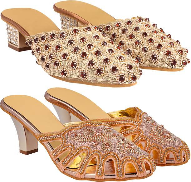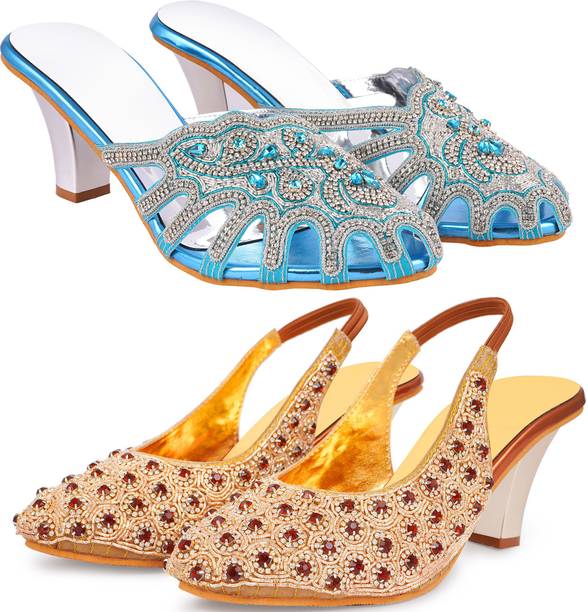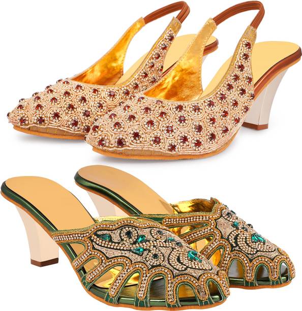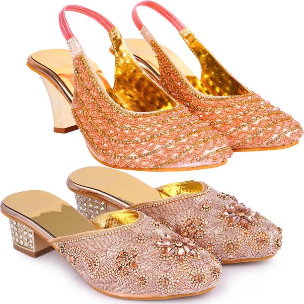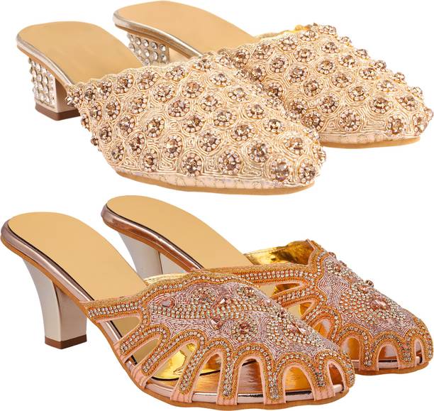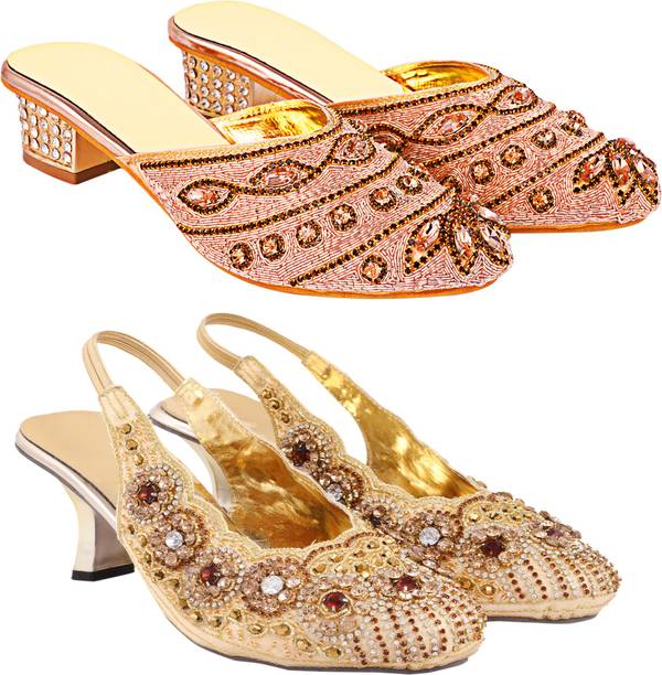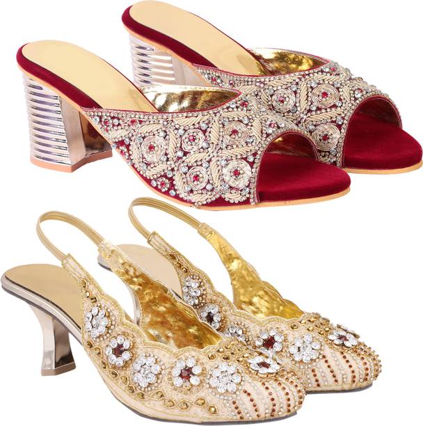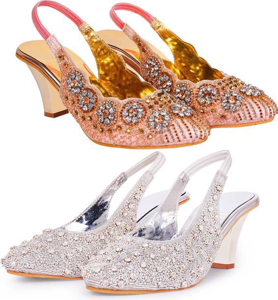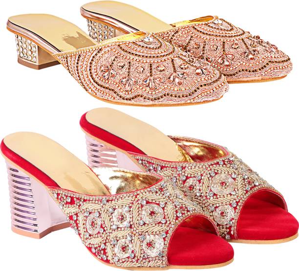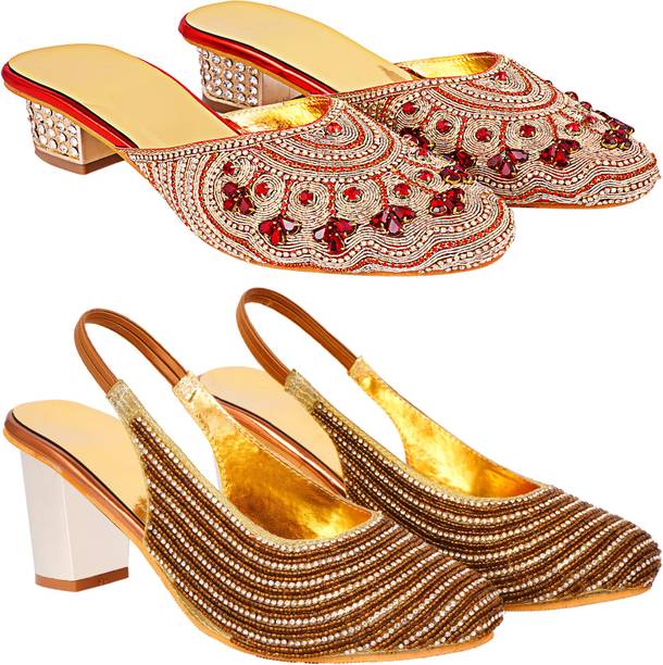 Building a wedding trousseau takes a lot of planning. You have to plan for the ensemble for every event and occasion for the big day that includes apparel, jewellery, accessories, wedding sandals for bride, and more. It is essential that you choose the right footwear as you might have to stand for long hours during the ceremonies and the reception. The footwear has to match with the outfit and be comfortable at the same time. Browse and choose from a variety of wedding sandals for bride available in a plethora of colours, designs, patterns, and styles for the big day. A pair of nude footwear will go well with most outfits without taking away the attention from your ensemble, while the golden and silver footwear will be appropriate with most dresses. Whether you prefer stilettos or wedges, flats or ballerinas, peep-toes or sandals, pumps or heels, you can always find matching footwear in a plethora of colours and styles for various wedding events and parties. Select the latest bridal wedding sandals from brands such as AlexaStar, GULMOHAR FASHION LIFE, Sparkle Collection, HoneyStep, Breezing Bird, and many more for your big day. You can shop from the comfort of your home for convenient doorstep delivery. The information you are reading has been last updated on 01-Oct-25.