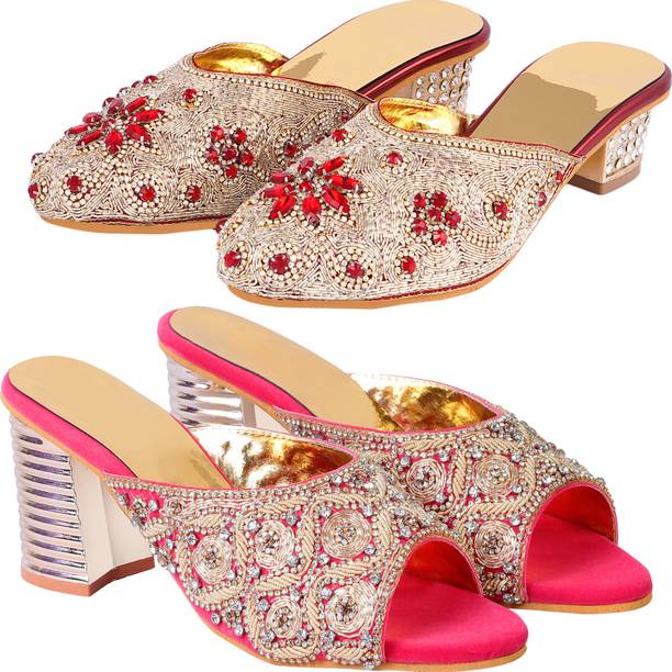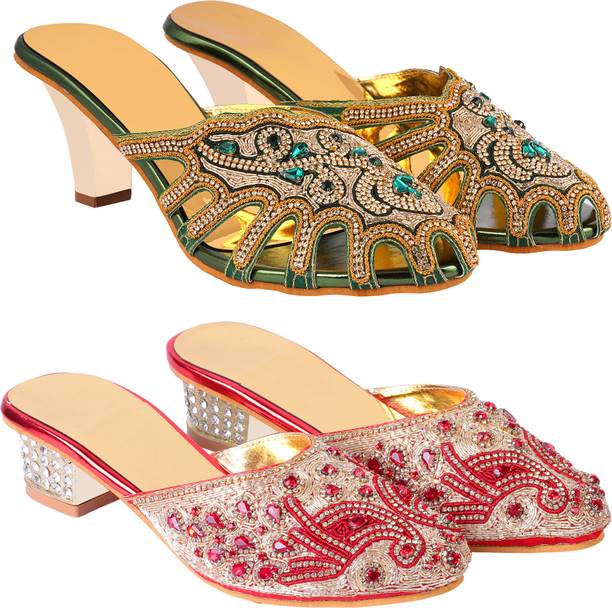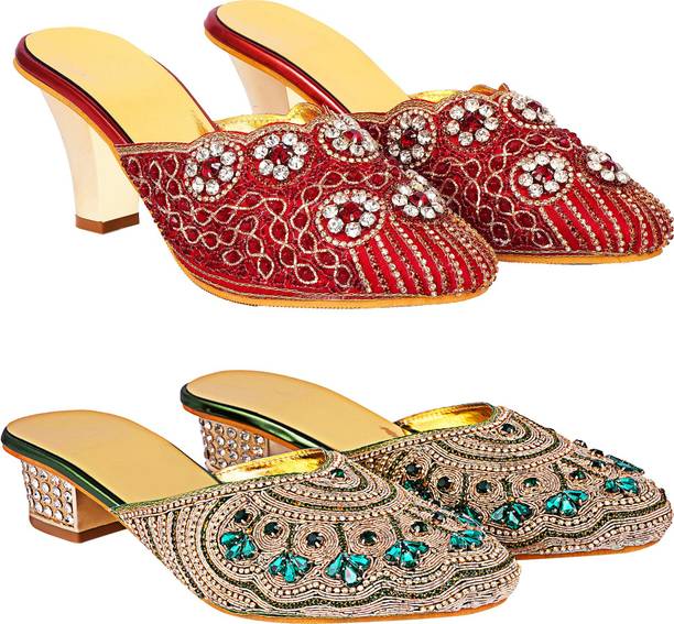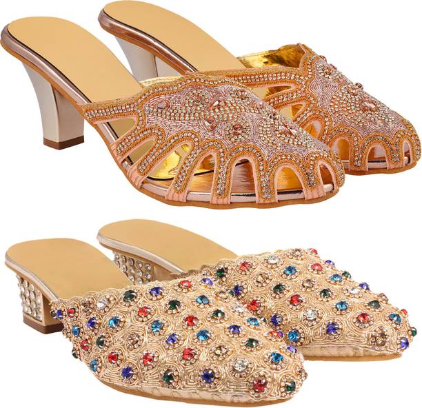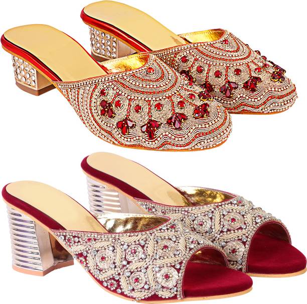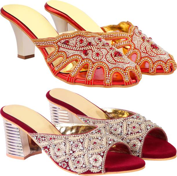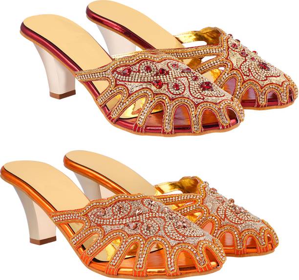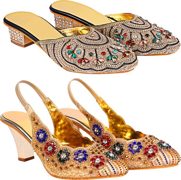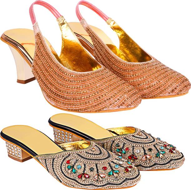 Building a wedding trousseau takes a lot of planning. You have to plan for the ensemble for every event and occasion for the big day that includes apparel, jewellery, accessories, wedding sandals for bride, and more. It is essential that you choose the right footwear as you might have to stand for long hours during the ceremonies and the reception. The footwear has to match with the outfit and be comfortable at the same time. Browse and choose from a variety of wedding sandals for bride available in a plethora of colours, designs, patterns, and styles for the big day. A pair of nude footwear will go well with most outfits without taking away the attention from your ensemble, while the golden and silver footwear will be appropriate with most dresses. Whether you prefer stilettos or wedges, flats or ballerinas, peep-toes or sandals, pumps or heels, you can always find matching footwear in a plethora of colours and styles for various wedding events and parties. Select the latest bridal wedding sandals from brands such as AlexaStar, GULMOHAR FASHION LIFE, Sparkle Collection, HoneyStep, Breezing Bird, and many more for your big day. You can shop from the comfort of your home for convenient doorstep delivery. The information you are reading has been last updated on 01-Oct-25.