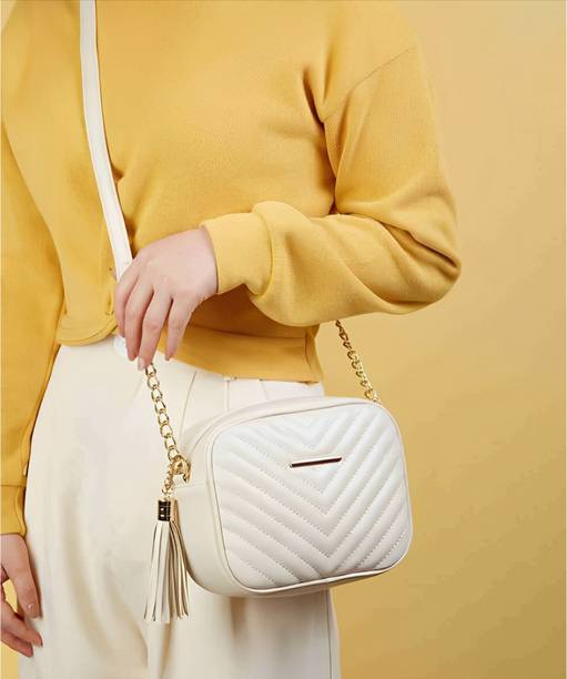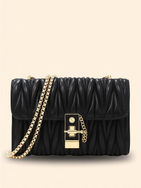 A chain sling bag for women is a trendy fashion selection that exudes elegance. Whether it is winter or summer, such smart additions to a woman’s wardrobe remain in style. You may select from small, medium, large, extra spacious, mini, and regular sizes accessible in these stylish bags. There are many themes to pick from, such as printed, solid, fringed, embossed, chequered prints, etc., in a variety of colour combinations. The bags are made from materials such as banana fibre, brocade, canvas, denim, nylon, etc. Leather materials such as artificial leather, synthetic leather, genuine leather, leatherette, etc., are also used to make the outer materials of the bags. The metal chains of the sling bags may be either coated in gold, silver, or rose gold finishes and vary in thickness and style in different slings. There may be one to five compartments and either zip or pocket closures. Most of the latest chain sling bag (new) varieties are provided with an additional detachable sling strap in the same colour. Explore the different models accessible online that may be bought with excellent offer options at the best price. Buy a chain sling bag from brands like Allen Solly, Ann Springs, Diana Korr, Lino Perros, Van Heusen, etc.,and get doorstep delivery. The information you are reading has been last updated on 31-Dec-25.