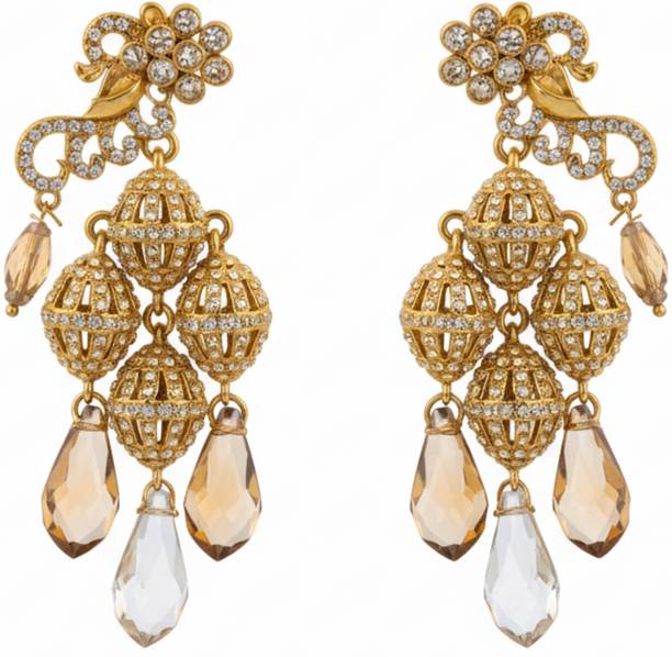 Chandelier earrings can be of different types based on the designs and materials used. They can be made of metals like Alloy, Brass, Copper and Stainless Steel, usually ornamented with different gemstones. A few types of chandelier earrings trending the market are: