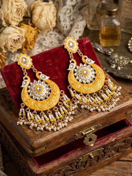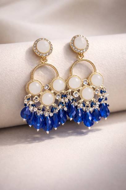 Chandelier earrings have been a classic statement for several years. They are a type of long earrings that hang below the earlobe and usually attached by a hook. There are different types of bases for chandelier earrings, with the most popular of them being a hook, a stud or a clip-on. These decorative pieces are an absolute favourite of women for decades as they look perfect on occasions like weddings, festivals or other events. Brands like Sukkhi, Frolic Store, Big Tree, Mehrunnisa and Rapidcostore have a great collection of chandelier earrings available online.