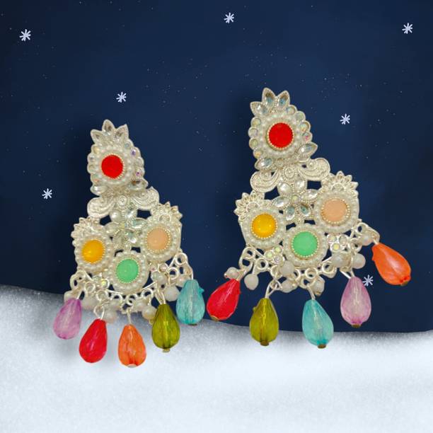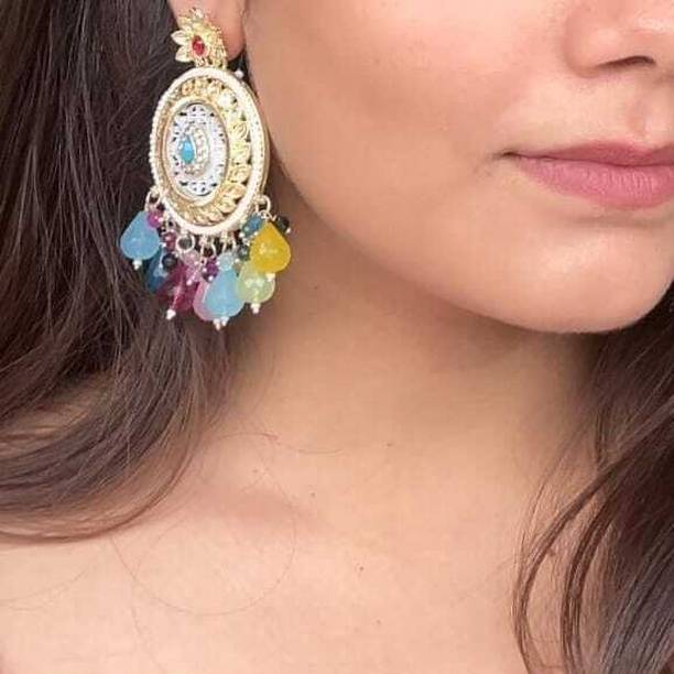 Chandelier earrings can be of different types based on the designs and materials used. They can be made of metals like Alloy, Brass, Copper and Stainless Steel, usually ornamented with different gemstones. A few types of chandelier earrings trending the market are: