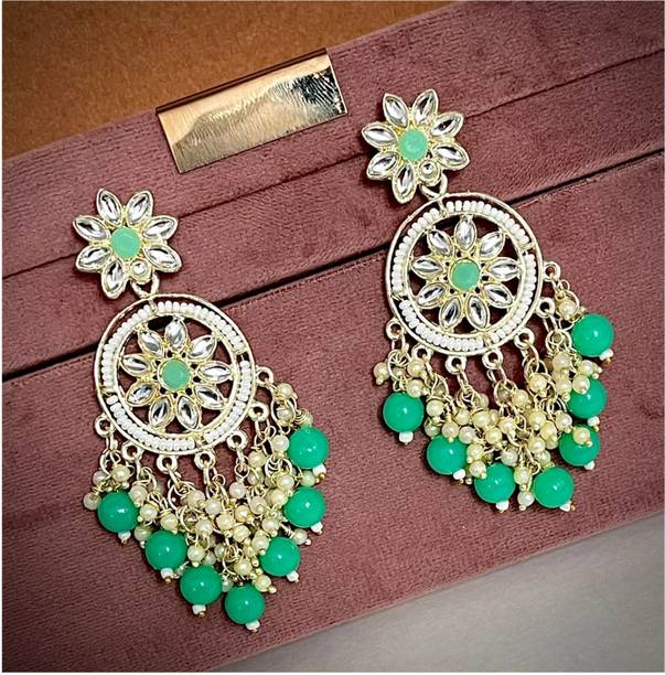Chandelier earrings have been a classic statement for several years. They are a type of long earrings that hang below the earlobe and usually attached by a hook. There are different types of bases for chandelier earrings, with the most popular of them being a hook, a stud or a clip-on. These decorative pieces are an absolute favourite of women for decades as they look perfect on occasions like weddings, festivals or other events. Brands like Sukkhi, Frolic Store, Big Tree, Mehrunnisa and Rapidcostore have a great collection of chandelier earrings available online.