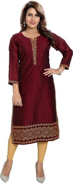 Dress with style in fashionable and graceful chanderi kurtis available online. You can opt for your favourite variants from the wide variety of choices available. You can opt for flared and Anarkali tunics to wear to any ceremonious gatherings and special occasions. For casual everyday wear options, you can find simple straight cut variants. You can try the styles with embroidered motifs, layered fabrics, tasselled hemlines, front-slit designs, tie-up patterns, and embellishments for weddings, festivals, sangeet, and mehendi ceremonies. You will be spoilt for choice from the vast range of styles, patterns, colours, and designs available on e-shopping websites. You can find different sleeve lengths, including three-quarter sleeves, half-sleeves, and sleeveless alternatives. Stylish and versatile styles such as Mandarin collars, boat neck, button closure, and detailed yoke designs and patterns make these chanderi kurtis a wardrobe essential. You can pair them with wide-legged bottoms like palazzos or with simple leggings to create a complete look. You can wear them to your workplace, colleges, and casual outings too. You can shop from brands like Libas, Varanga, Nayo, Rare Roots, and Alena. You can look for the prices, colour options, and size to pick the suitable kurti perfect for you and shop chanderi kurtis online across e-stores, you can choose from different styles of chanderi kurtis from Flipkart online store at best prices. Price list last updated on 10-Dec-25.