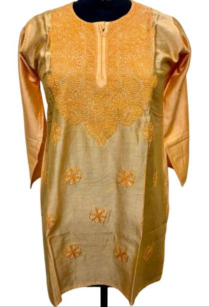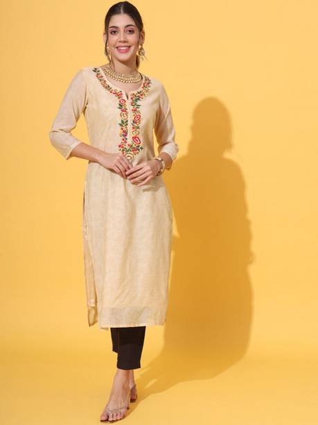 Dress with style in fashionable and graceful chanderi kurtis available online. You can opt for your favourite variants from the wide variety of choices available. You can opt for flared and Anarkali tunics to wear to any ceremonious gatherings and special occasions. For casual everyday wear options, you can find simple straight cut variants. You can try the styles with embroidered motifs, layered fabrics, tasselled hemlines, front-slit designs, tie-up patterns, and embellishments for weddings, festivals, sangeet, and mehendi ceremonies. You will be spoilt for choice from the vast range of styles, patterns, colours, and designs available on e-shopping websites. You can find different sleeve lengths, including three-quarter sleeves, half-sleeves, and sleeveless alternatives. Stylish and versatile styles such as Mandarin collars, boat neck, button closure, and detailed yoke designs and patterns make these chanderi kurtis a wardrobe essential. You can pair them with wide-legged bottoms like palazzos or with simple leggings to create a complete look. You can wear them to your workplace, colleges, and casual outings too. You can shop from brands like Libas, Varanga, Nayo, Rare Roots, and Alena. You can look for the prices, colour options, and size to pick the suitable kurti perfect for you and shop chanderi kurtis online across e-stores, you can choose from different styles of chanderi kurtis from Flipkart online store at best prices. Price list last updated on 08-Oct-25.