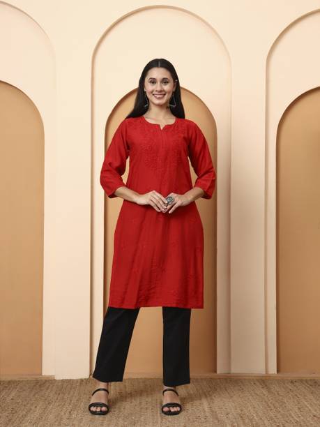 Dress with style in fashionable and graceful chanderi kurtis available online. You can opt for your favourite variants from the wide variety of choices available. You can opt for flared and Anarkali tunics to wear to any ceremonious gatherings and special occasions. For casual everyday wear options, you can find simple straight cut variants. You can try the styles with embroidered motifs, layered fabrics, tasselled hemlines, front-slit designs, tie-up patterns, and embellishments for weddings, festivals, sangeet, and mehendi ceremonies. You will be spoilt for choice from the vast range of styles, patterns, colours, and designs available on e-shopping websites. You can find different sleeve lengths, including three-quarter sleeves, half-sleeves, and sleeveless alternatives. Stylish and versatile styles such as Mandarin collars, boat neck, button closure, and detailed yoke designs and patterns make these chanderi kurtis a wardrobe essential. You can pair them with wide-legged bottoms like palazzos or with simple leggings to create a complete look. You can wear them to your workplace, colleges, and casual outings too. You can shop from brands like Libas, Varanga, Nayo, Rare Roots, and Alena. You can look for the prices, colour options, and size to pick the suitable kurti perfect for you and shop chanderi kurtis online across e-stores, you can choose from different styles of chanderi kurtis from Flipkart online store at best prices. Price list last updated on 03-Mar-26.