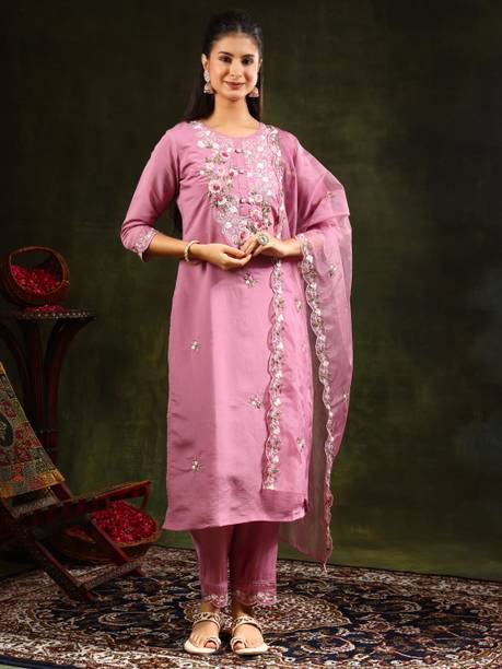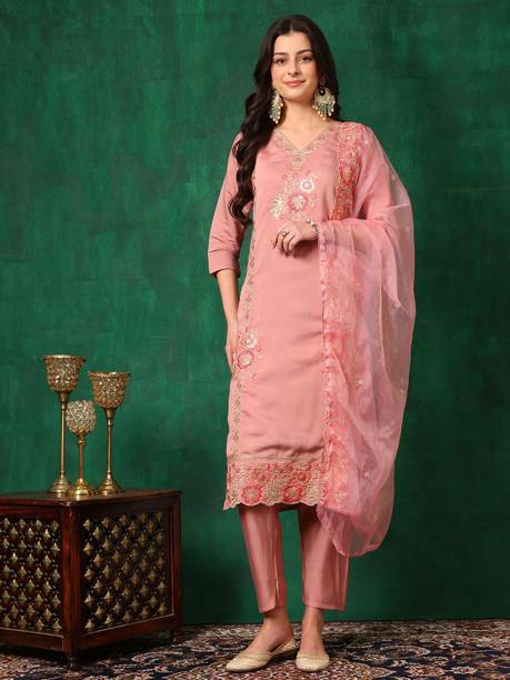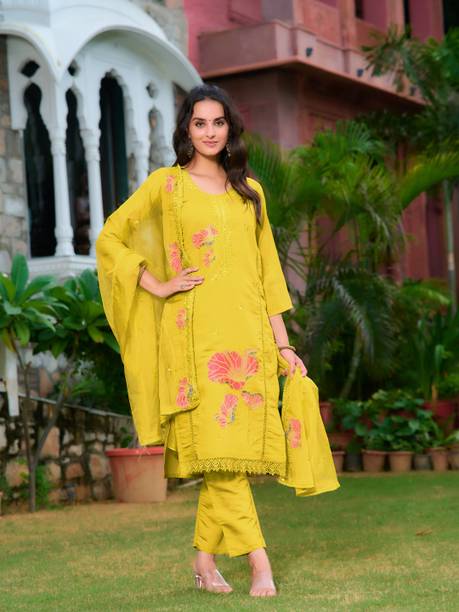 The authenticity and richness of the Chanderi fabric make it a popular choice for women of all ages. The Chanderi silk suit sets look graceful and regal and are the best options for traditional and celebratory functions. Chanderi suit sets are appropriate for all types of seasons. For summers, you can opt for Chanderi cotton suit sets as the fabric is breathable and comfortable. In addition to the richness of the fabric, the design and embroidery patterns are also elegant. Some of the popular motifs used on the Chanderi fabric are peacocks, flowers, zari work, geometric designs, etc. You can simply pair these salwar suits with minimal pieces of jewellery, as the heavy embroidery and the glossy fabric of the suits help elevate the look seamlessly. Opt for a simple suit with minimal embroidery if you are opting for a heavy jewellery set. These kurta sets are available in many designs and colours, and you can choose according to your comfort and tastes.