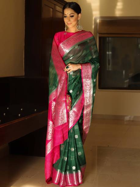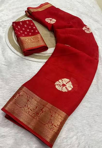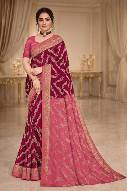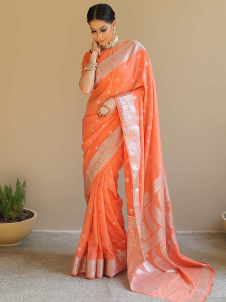 Chiffon is a light, transparent material that is generally made from silk or nylon. Adding the exquisite Banarasi work to it makes the chiffon banarasi saree an irresistible combination for many reasons. Traditionally Banarasi sarees are made with high-quality silk that makes them heavy. Though comfortable wear, traditional Banarasi sarees are more suited for a bride than a bride's maid. However, choosing chiffon as the fabric makes these sarees suitable for everyone depending on how dense the embellishments are. Chiffon banarasi sarees drape well because of the flowy fabric and can be worn to family functions, festival parties, or other celebratory gatherings. The embroidery and embellishments on these sarees are done with either silk thread or zari (golden thread). You can choose a suitable design and type of work depending on the occasion. Brands such as Mimosa, Bhavyakti, AK Fashion, APM Royal, and Bombey Velvat Fab offer a huge variety of these sarees for you to choose from. Because of their intricate Banarasi designs and artwork, these sarees make excellent wedding gifts. You can browse through web stores to take a peek at these collections and buy your chiffon banarasi saree online. The information you are reading has been last updated on 20-Apr-26.