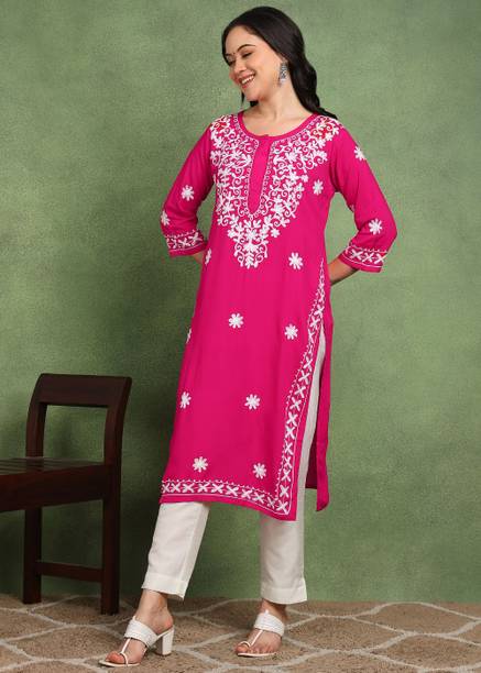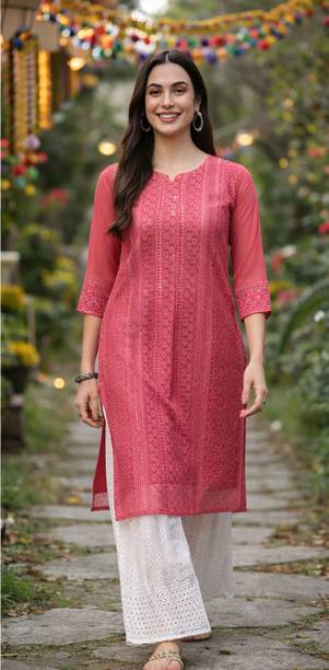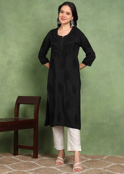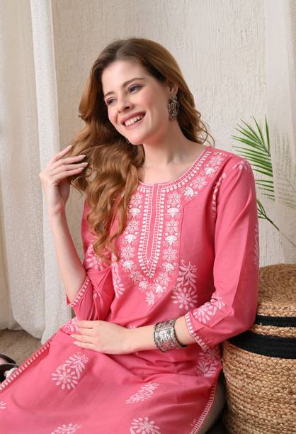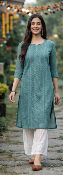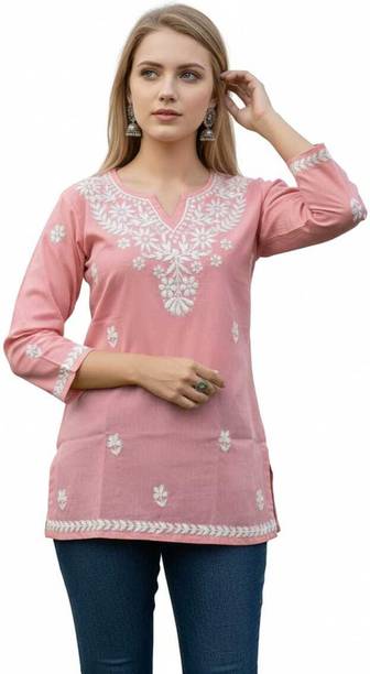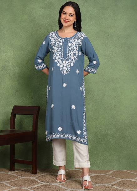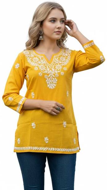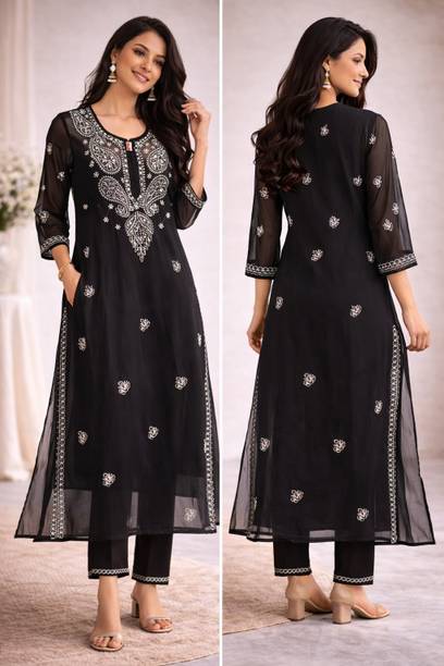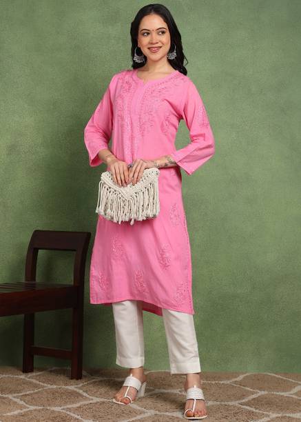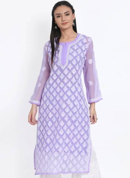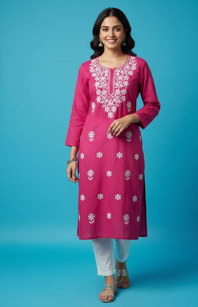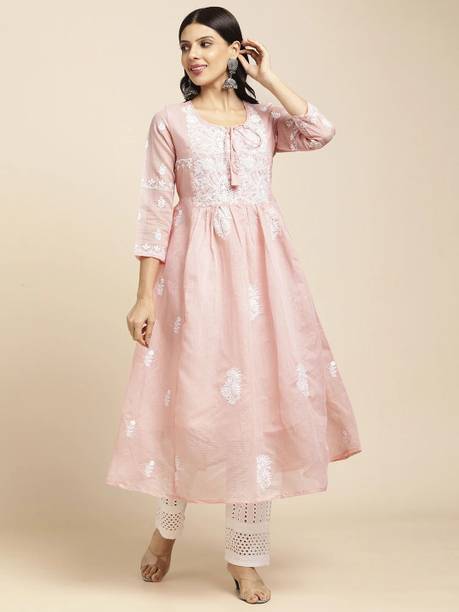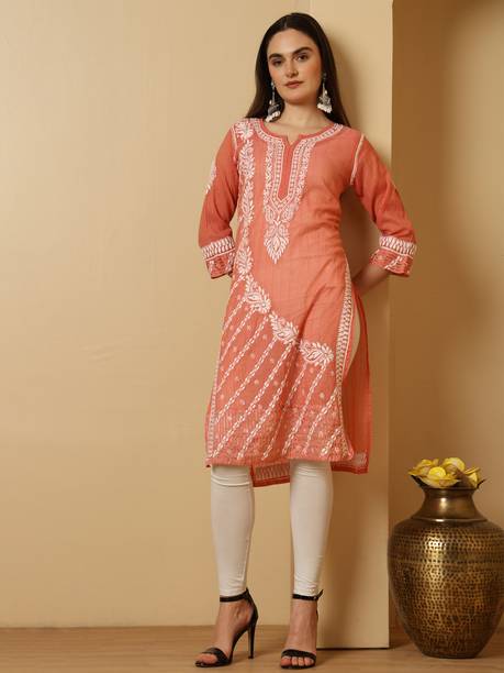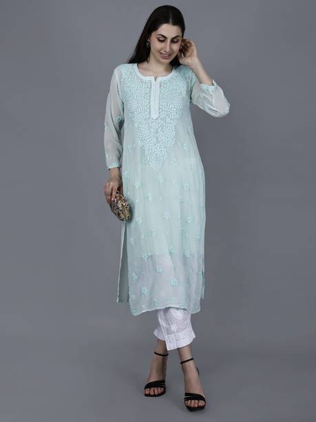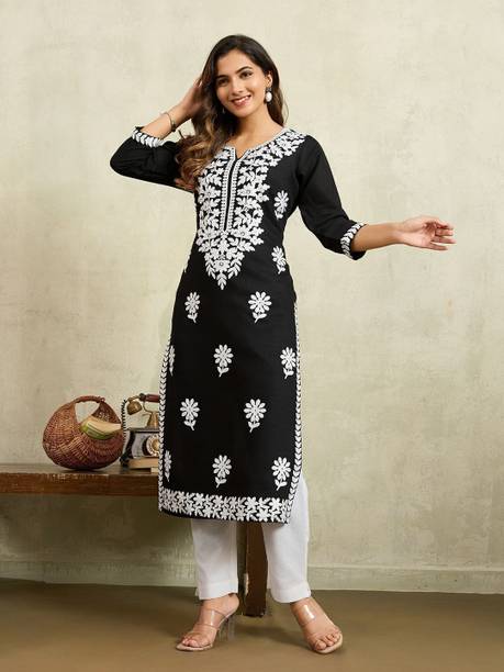 Traditional Indian hand embroidery in Chikankari kurtas, also known as chikan, is suitable for formal and semi-formal occasions. It is known as chikankari (shadow labour), derived from the Persian word Chikeen. Light muslin and cotton clothing in soothing pastel colours are stitched together with a white thread in this technique. It is possible to achieve a pattern that resembles shadow work by using herringbone stitching on the reverse side of the cloth. Chikankari is a white needlework technique in which designs are filled with the 32 stitching methods used in this embroidered work, such as herringbone stitching, embossed and flat stitch, open trellis, and raised stitch, to name a few. You can choose from several colours, fabrics, and sleeve lengths based on your preferences and comfort levels. Choose from fabric options like pure cotton, cotton blend, denim blend, tussar silk, chiffon, and more. You can also select from different kurta lengths like long, ankle-length, mid, short, above the knee, hip length, below the knee, calf-length, knee-length, and more. Select your favourite chikankari kurta from labels like ANGITA, Vrisa, SAADGI, Aurelia, Mrig, and many others. Check out the exclusive collection of the latest chikankari kurtas available online and place an order for doorstep delivery. The information you are reading has been last updated on 09-Mar-26.