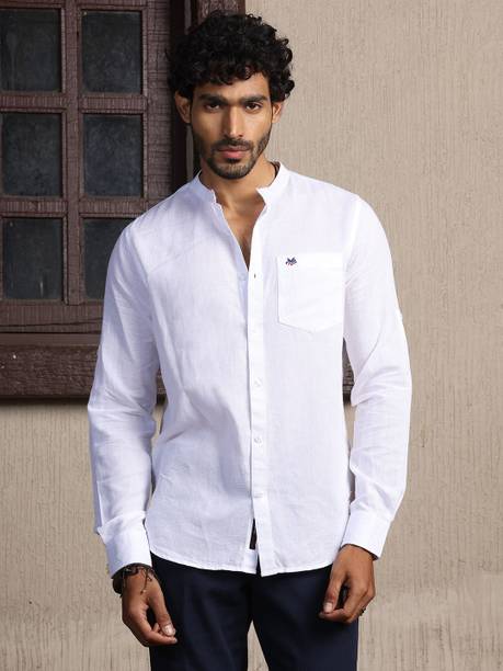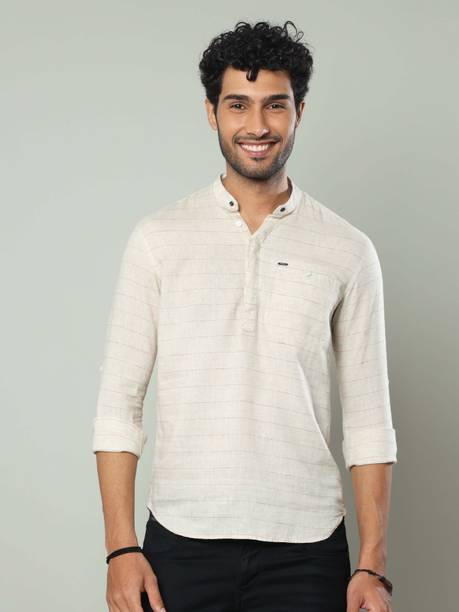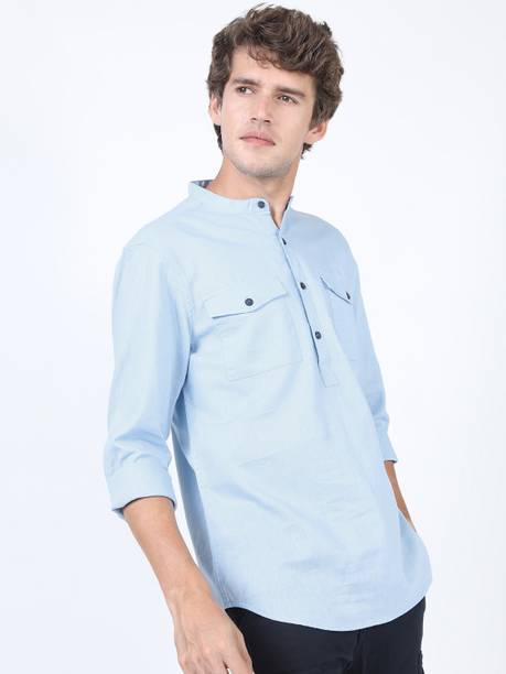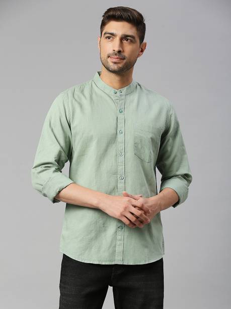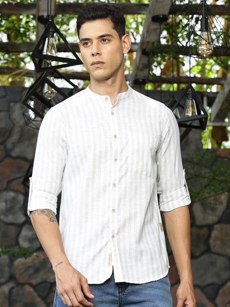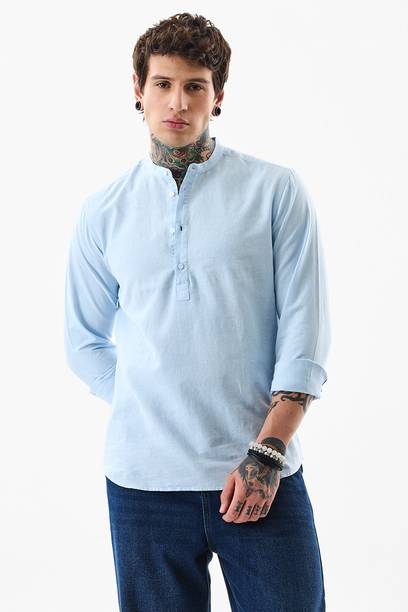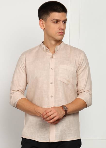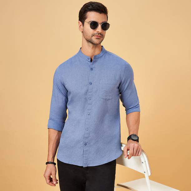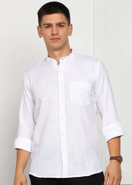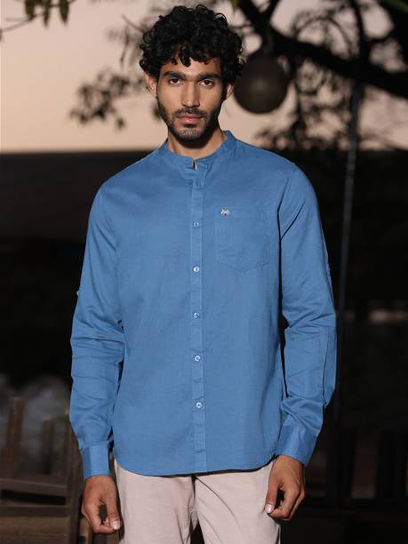 Chinese collar linen shirts for men are comfortable apparel exhibiting style with high neck pattern. The shirts are crafted with lightweight linen fabric that may be blended with cotton. The resultant material is extremely airy, which keeps the body cool and breezy. The shirts are ideal for the hot and perspiring summer season. Wear stylish shirts with matching chinos and loafers for a semi-casual look to work or jeans and sneakers for a casual look at parties. The trendy shirts are available in different sizes and colour combinations. The patterns obtainable are striped and solid with a slim-fit design. Mandarin collar is always in style for a person who loves to wear casual shirts. The shirts are available in short or full sleeves, and you can choose based on your comfort. Browse and explore exciting offers and the best prices online. The latest Chinese collar linen shirts (new) styles may be hand-washed, dry-cleaned, or machine-washed at a low tumble movement, as per the wash care instruction on the label. Buy Chinese collar linen shirts from brands such as Indi Hemp, Kuons Avenue, OLD GREY, Dhrohar and more online from the comfort of your home. Place the order for doorstep delivery. The information you are reading has been last updated on 15-Oct-25.