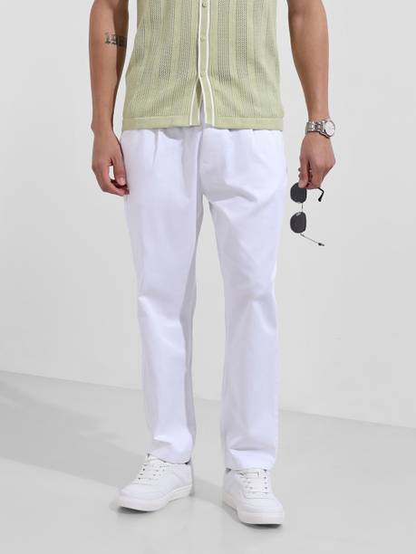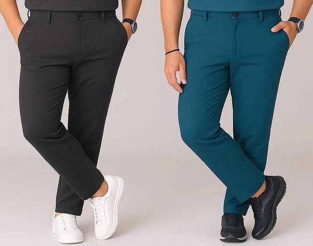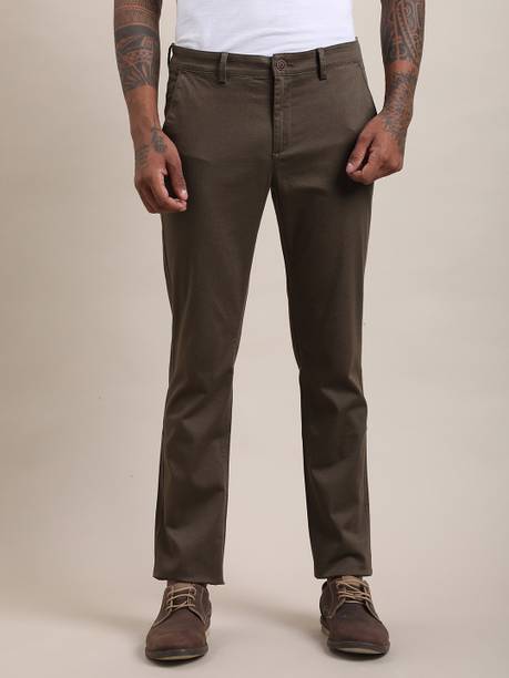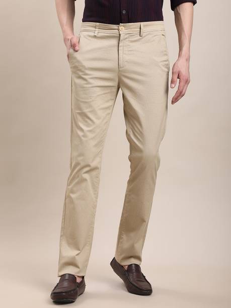 Chinos are comfortable pants and are popular among men, women, and kids alike. Being a versatile outfit, these trousers can be worn at almost every occasion, be it a party, a festival, or a casual or semi-formal occasion. A staple of men’s fashion, these trousers can easily be incorporated in a casual look or a formal ensemble. For a casual look, team a pair of comfortable trousers with a T-shirt of your choice. For a more formal look, opt for a trendy blazer and a shirt to pair with the trousers. Comfort-oriented fabrics like cotton, cotton blend, denim, linen, lycra, polycotton, rayon, viscose, and corduroy are generally used in the making of these trousers. These trousers come in various fitting types like regular fit, slim fit, skinny fit, relaxed fit, and tapered fit, so there is no lack of choice. Van Heusen, Allen Solly, Raymond, John Players, Jack & Jones, and Louis Philippe are some of the extremely popular brands offering these trousers in a multitude of styles. Chinos are available in various types like casual trousers, cigarette trousers, cropped trousers, formal trousers, joggers, and tailored trousers. Shop for the latest chinos with exciting patterns like camouflage, checkered, floral, solid, geometric, self-design, striped, and textured according to your taste and preference.The information you are reading has been last updated on 07-Nov-25