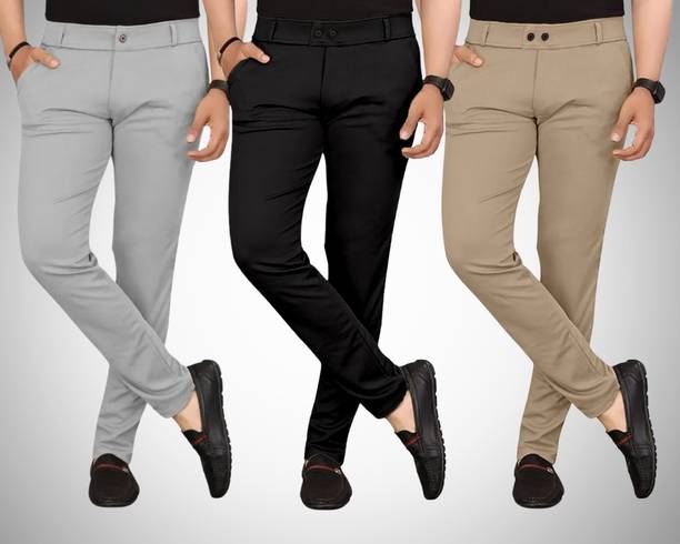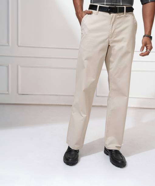 Chinos are comfortable pants and are popular among men, women, and kids alike. Being a versatile outfit, these trousers can be worn at almost every occasion, be it a party, a festival, or a casual or semi-formal occasion. A staple of men’s fashion, these trousers can easily be incorporated in a casual look or a formal ensemble. For a casual look, team a pair of comfortable trousers with a T-shirt of your choice. For a more formal look, opt for a trendy blazer and a shirt to pair with the trousers. Comfort-oriented fabrics like cotton, cotton blend, denim, linen, lycra, polycotton, rayon, viscose, and corduroy are generally used in the making of these trousers. These trousers come in various fitting types like regular fit, slim fit, skinny fit, relaxed fit, and tapered fit, so there is no lack of choice. Van Heusen, Allen Solly, Raymond, John Players, Jack & Jones, and Louis Philippe are some of the extremely popular brands offering these trousers in a multitude of styles. Chinos are available in various types like casual trousers, cigarette trousers, cropped trousers, formal trousers, joggers, and tailored trousers. Shop for the latest chinos with exciting patterns like camouflage, checkered, floral, solid, geometric, self-design, striped, and textured according to your taste and preference.The information you are reading has been last updated on 25-Dec-25