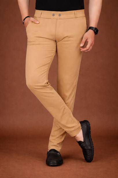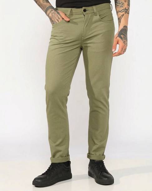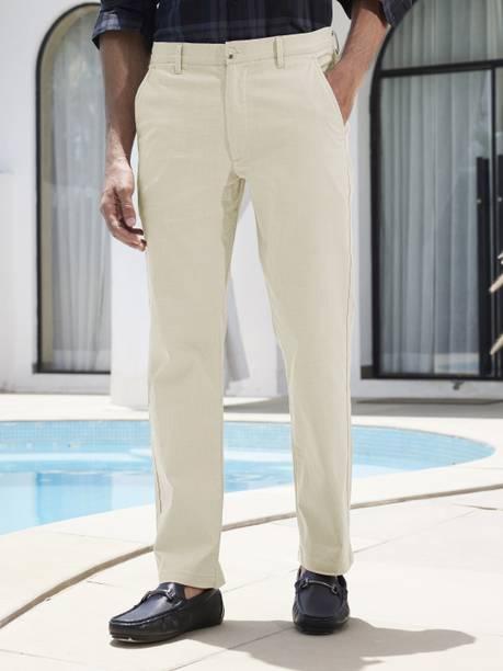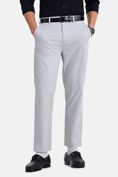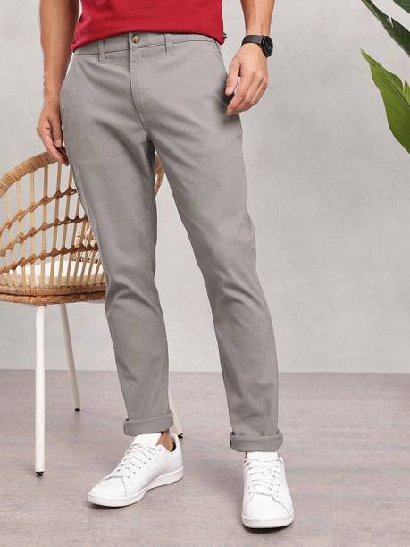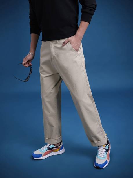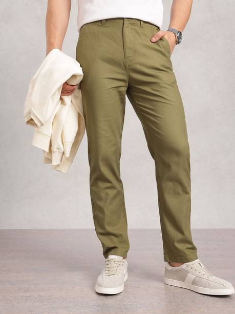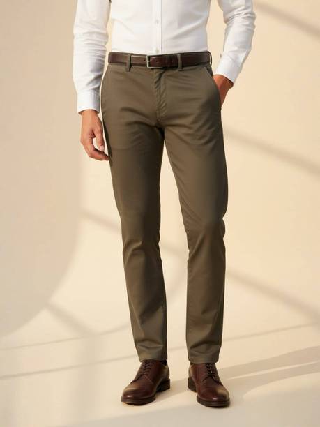 Chinos are comfortable pants and are popular among men, women, and kids alike. Being a versatile outfit, these trousers can be worn at almost every occasion, be it a party, a festival, or a casual or semi-formal occasion. A staple of men’s fashion, these trousers can easily be incorporated in a casual look or a formal ensemble. For a casual look, team a pair of comfortable trousers with a T-shirt of your choice. For a more formal look, opt for a trendy blazer and a shirt to pair with the trousers. Comfort-oriented fabrics like cotton, cotton blend, denim, linen, lycra, polycotton, rayon, viscose, and corduroy are generally used in the making of these trousers. These trousers come in various fitting types like regular fit, slim fit, skinny fit, relaxed fit, and tapered fit, so there is no lack of choice. Van Heusen, Allen Solly, Raymond, John Players, Jack & Jones, and Louis Philippe are some of the extremely popular brands offering these trousers in a multitude of styles. Chinos are available in various types like casual trousers, cigarette trousers, cropped trousers, formal trousers, joggers, and tailored trousers. Shop for the latest chinos with exciting patterns like camouflage, checkered, floral, solid, geometric, self-design, striped, and textured according to your taste and preference.The information you are reading has been last updated on 01-Apr-26