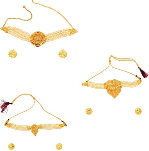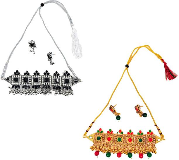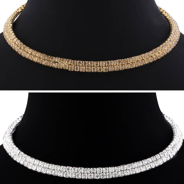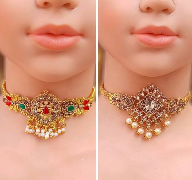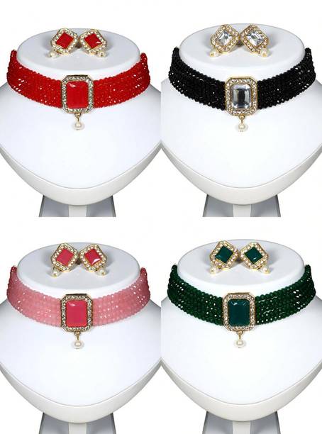 If you love to flaunt gorgeous jewellery at special events, choker sets might be the right choice for you. These beautiful ornament sets are available online in beautiful designs, colours, and materials. You can choose your favourite choker set designs in antique jewellery collection, chunky chain necklaces, kundan, zirconium, polki, Odisha handcrafted jewellery, and more. You can go for contemporary chokers to wear with Indo-Western attires like choli and dhoti pants, saree with jacket, buttoned-down tops with palazzos, and off-shoulder tops and long traditional skirts, and more. For more traditional looks in ghagra, lehengas, and sarees, ethnic chokers and ornaments are the perfect fit. You can opt for chokers encrusted with opal, pearl, beads, garnet, ruby, quartz, zircon, diamond, crystal and cat's eye to add a dazzling effect to your looks. Pair these with your favourite garments for wedding ceremonies, anniversaries, family functions, formal occasions, religious events, and social gatherings. You can wear these ethnic necklaces with matching bangles, maang tikkas, studded kamarbandhs, and more. Choose from cotton dori, enamel, glass, lac, acrylic, oxidised silver, and many other materials for choker sets. You can buy these from brands like Foxiie Trends, ZENEME, YELLOW CHIMES, MEENAZ, and Aarohi. The information you are reading has been last updated on 13-Apr-26.