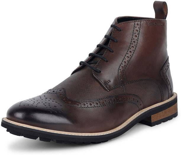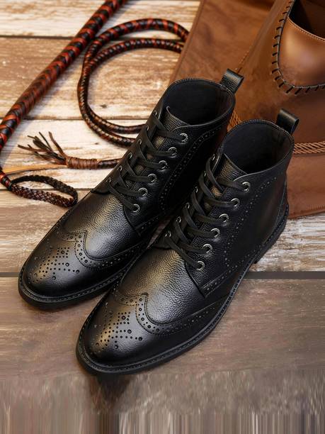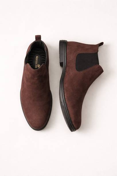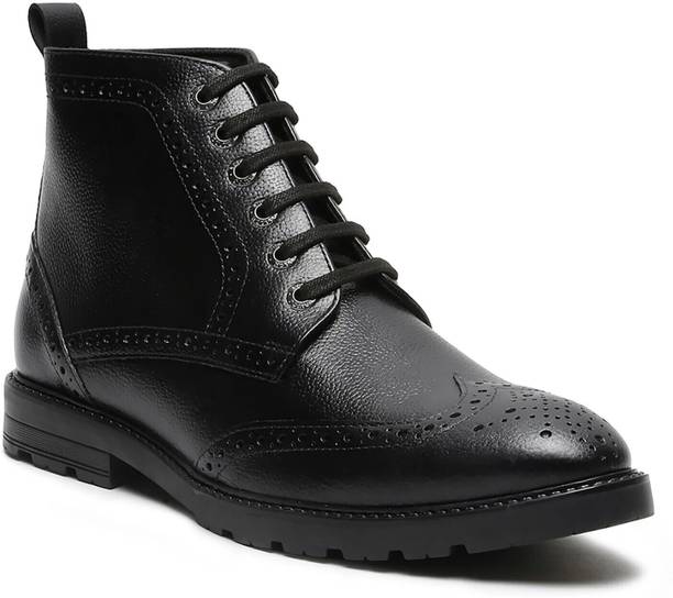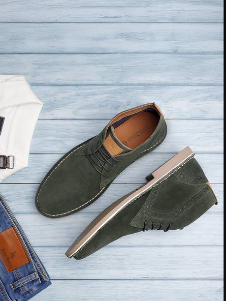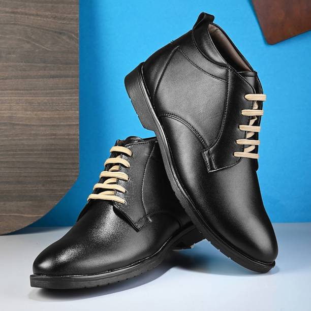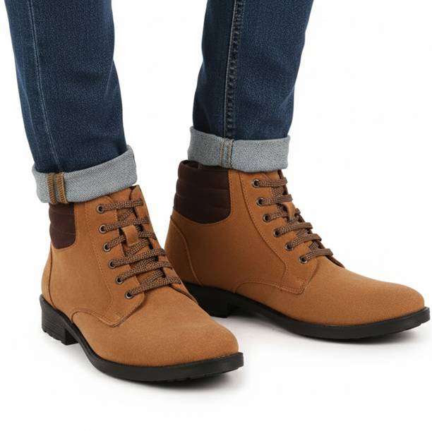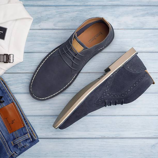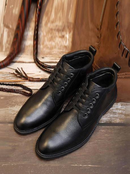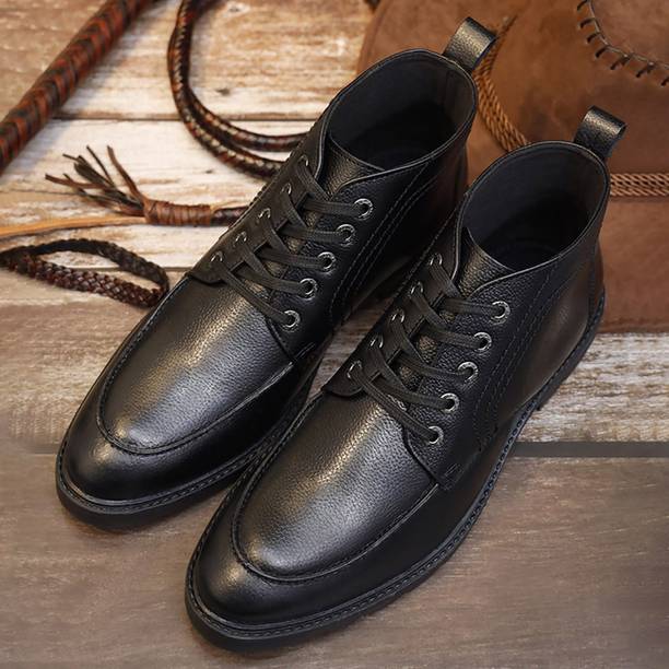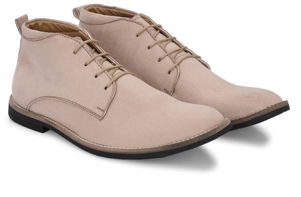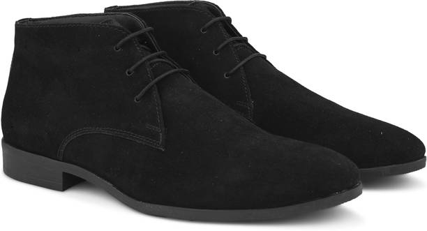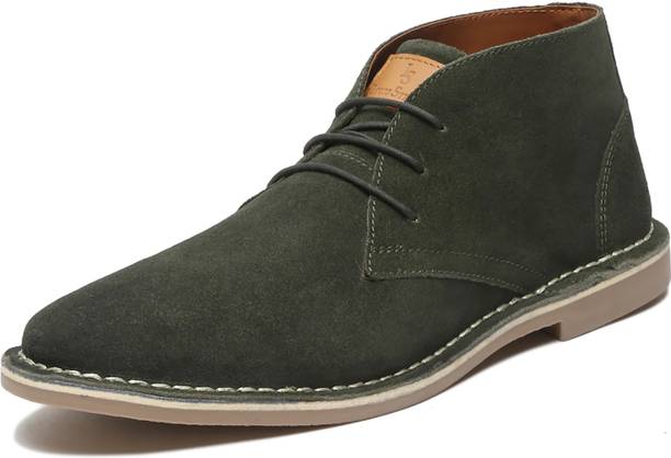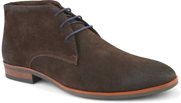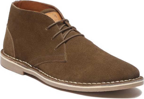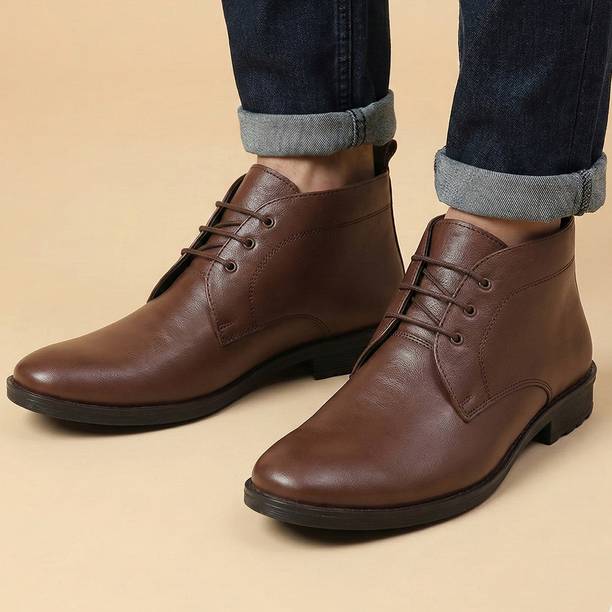 If the evening calls for you to dress in your fancy garb, put your best foot forward in leather boots. Brands like Red Tape and Knotty Derby offer you their own renditions of these classic boots. When it comes to colors, you can never go wrong with black, tan, or beige. Some chukkas for men have slightly elevated heels . These shoes not only boost your height, but also amp up your style quotient.
