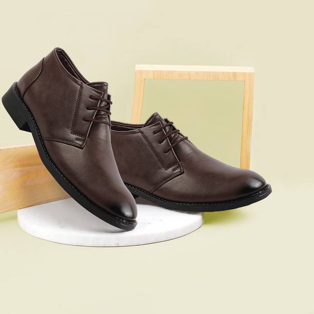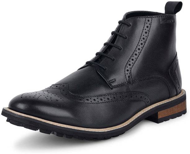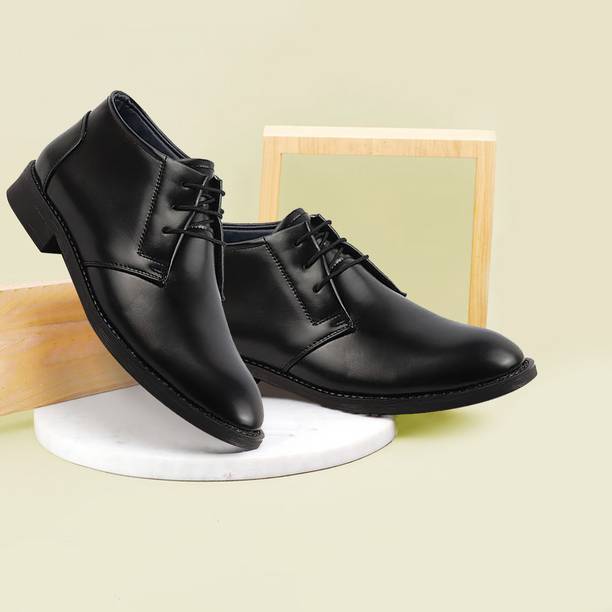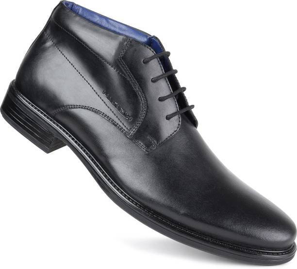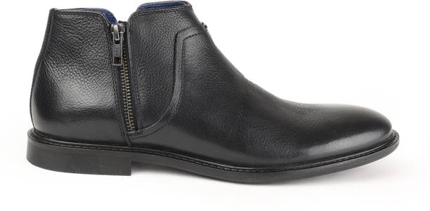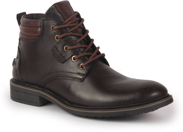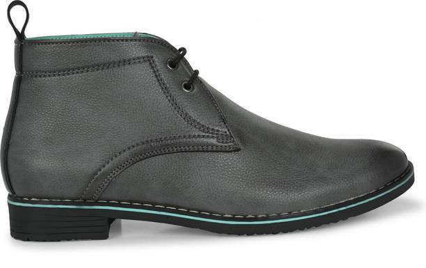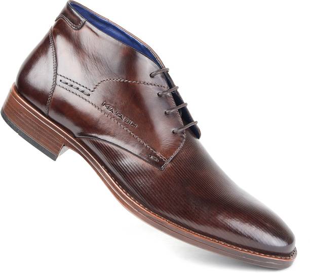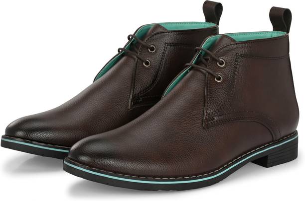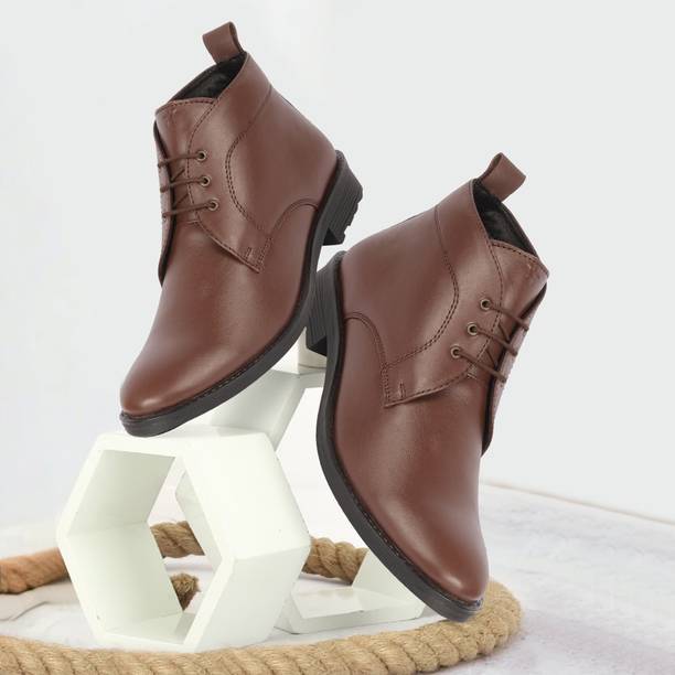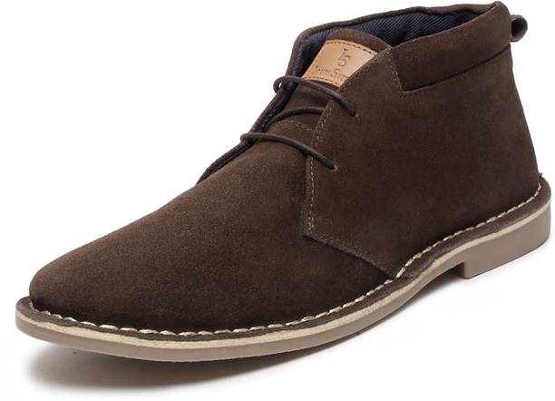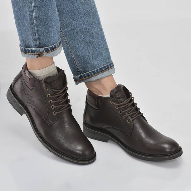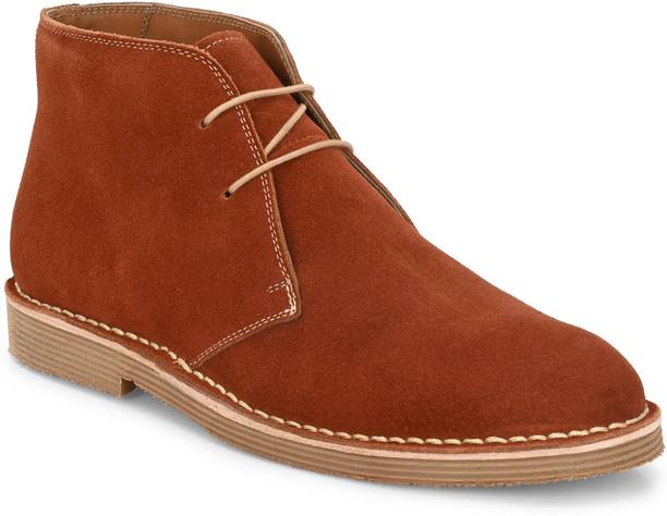 If the evening calls for you to dress in your fancy garb, put your best foot forward in leather boots. Brands like Red Tape and Knotty Derby offer you their own renditions of these classic boots. When it comes to colors, you can never go wrong with black, tan, or beige. Some chukkas for men have slightly elevated heels . These shoes not only boost your height, but also amp up your style quotient.