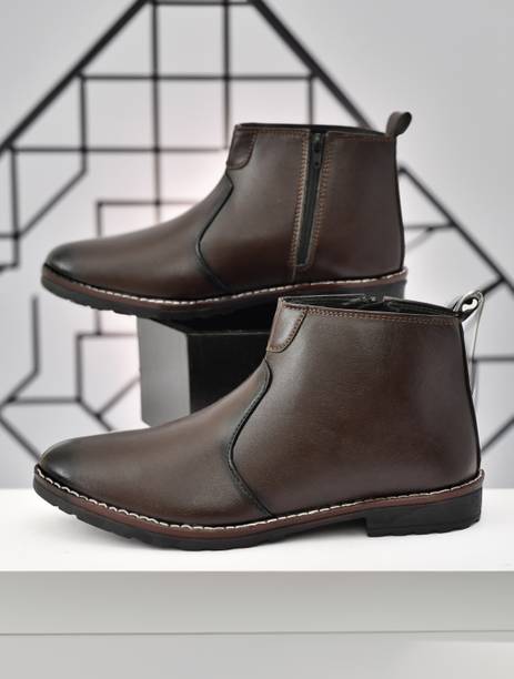 FAUSTO Suede Leather Outdoor Everyday High Ankle Classy Chelsea Boots For Men
