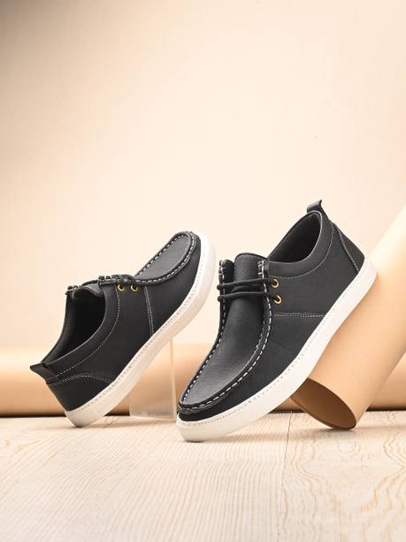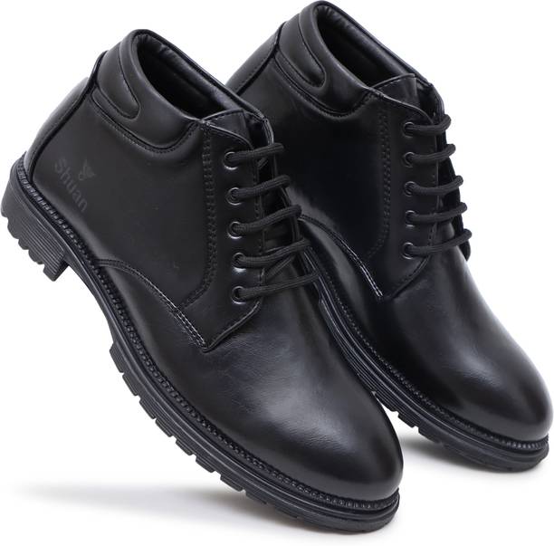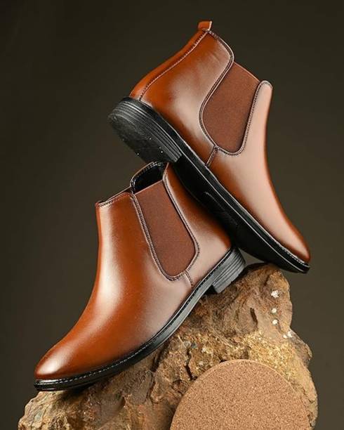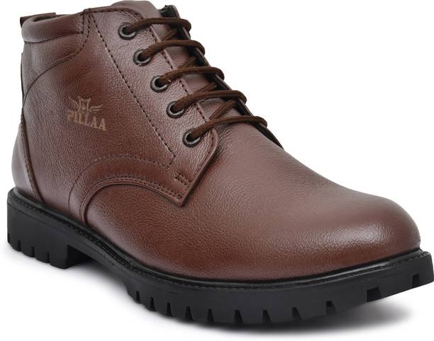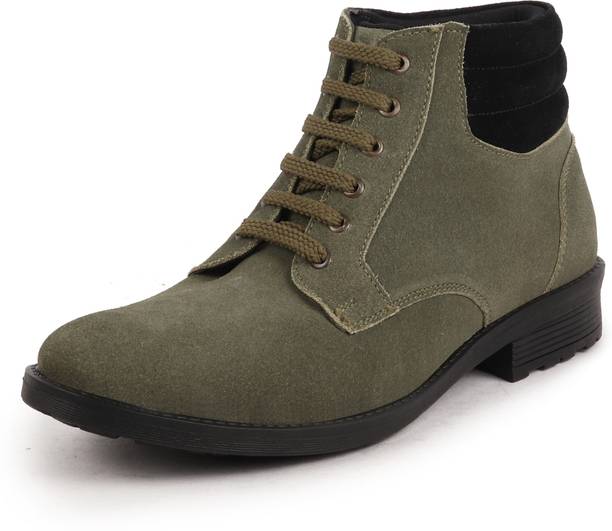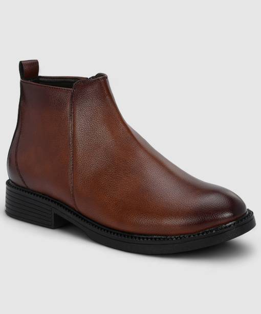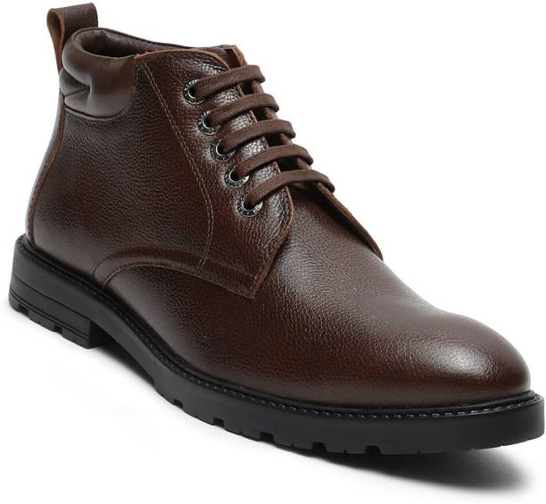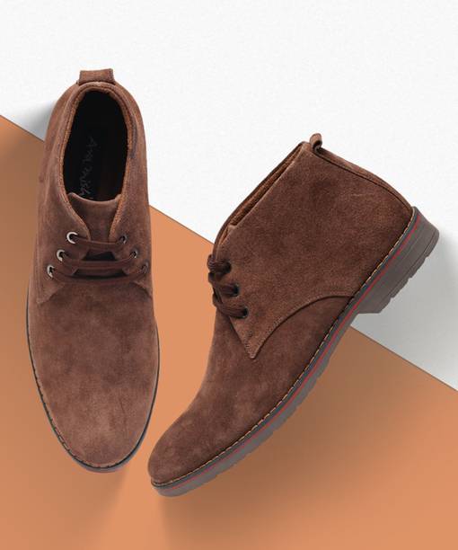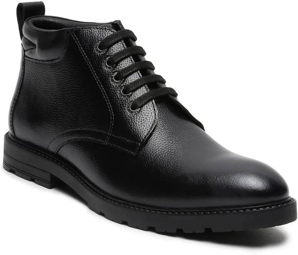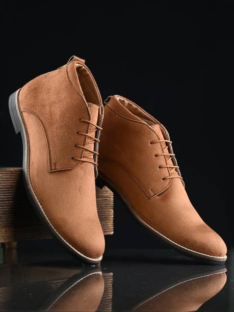 If the evening calls for you to dress in your fancy garb, put your best foot forward in leather boots. Brands like Red Tape and Knotty Derby offer you their own renditions of these classic boots. When it comes to colors, you can never go wrong with black, tan, or beige. Some chukkas for men have slightly elevated heels . These shoes not only boost your height, but also amp up your style quotient.