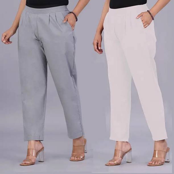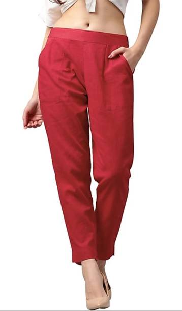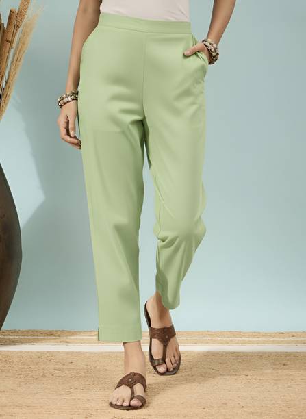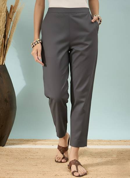 Cigarette pants add a fusion of traditional and modern styles to your outfit with their high waistbands, flat fronts, and narrow fit. They can be paired with various ethnic tops and kurtas, creating a stylish yet culturally inspired look. These pants can come in handy for various occasions in formal, casual and semi-casual settings. You can pair these pants with short or mid-length kurtas or Anarkali kurtas and trendy jewellery, creating a style statement wherever you go. The streamlined design of the pants offers an exciting contrast to your topwear, resulting in a graceful and stylish appearance. Incorporating cigarette pants into ethnic wear demonstrates how fashion continues to evolve, offering you the freedom to experiment with your style while celebrating your cultural heritage. These pants bridge tradition and modernity, allowing you to embrace both worlds in your clothing choices. You can explore the latest collection of these pants online and select the ones that best meet your requirements. Several brands that provide these pants online at different price ranges include Rangita, Mayesha, Teekay, Liyara, Dollar Missy, and many more. Buy your preferred pants online and get your order delivered to your doorstep.