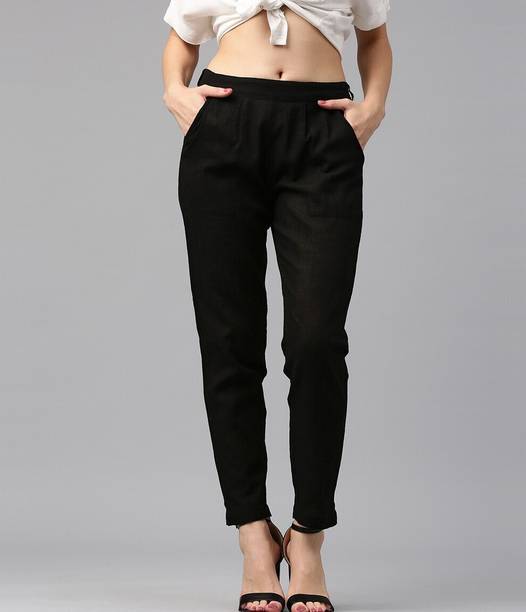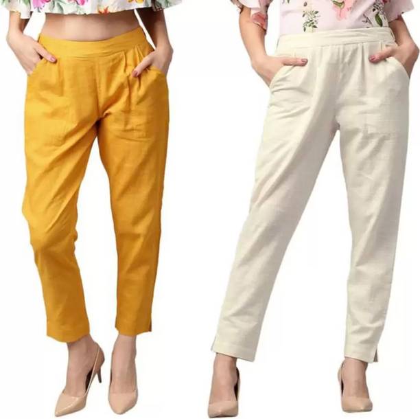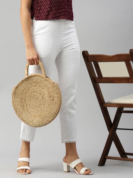 Cigarette pants add a fusion of traditional and modern styles to your outfit with their high waistbands, flat fronts, and narrow fit. They can be paired with various ethnic tops and kurtas, creating a stylish yet culturally inspired look. These pants can come in handy for various occasions in formal, casual and semi-casual settings. You can pair these pants with short or mid-length kurtas or Anarkali kurtas and trendy jewellery, creating a style statement wherever you go. The streamlined design of the pants offers an exciting contrast to your topwear, resulting in a graceful and stylish appearance. Incorporating cigarette pants into ethnic wear demonstrates how fashion continues to evolve, offering you the freedom to experiment with your style while celebrating your cultural heritage. These pants bridge tradition and modernity, allowing you to embrace both worlds in your clothing choices. You can explore the latest collection of these pants online and select the ones that best meet your requirements. Several brands that provide these pants online at different price ranges include Rangita, Mayesha, Teekay, Liyara, Dollar Missy, and many more. Buy your preferred pants online and get your order delivered to your doorstep.