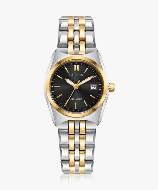 For women, Citizen Eco Drive collection has analog watches in different elegant styles and designs. When it comes to shapes, there are square and round-dialed watches that you can check out online. Citizen Eco Drive timepieces for women comes with metal straps, and these watches are available in different themes, such as mother of pearls dials, two-tone, bangle, and colored-dials among others. In strap colors, you can choose from gold, yellow, and silver. And in dial shades, there is black, blue, grey, white, and silver among other colors. The classy and elegant Citizen Eco Drive watches complement casual, formal, and semi-formal attires. Whether it’s your office attires or kanjivaram silk sarees, the Citizen Eco Drive watches complement most corporate as well as traditional looks.