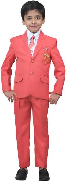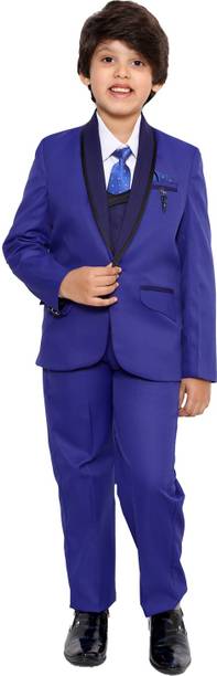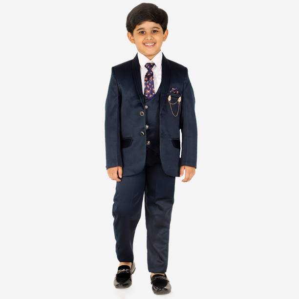 YoungYarns 5 Piece Coat Suit Set With Shirt, Pant, Waistcoat & Tie for Boys Solid Boys Suit