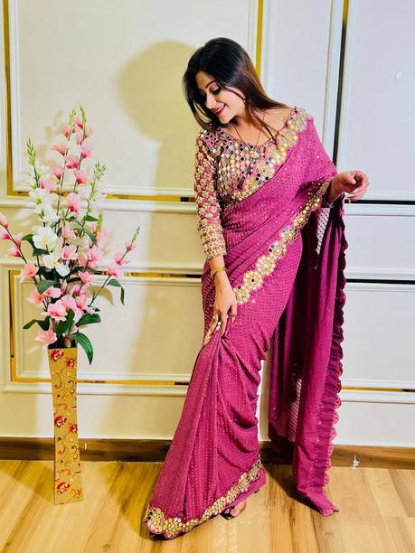 A head-turner for the evening, cocktail sarees are elegant, eye-catching drapes that are ideal as partywear. These drapes are tailored to be eye-catching with vibrant colours and are available in various prints like floral prints, woven, embellishments, and more. You can find them in a variety of fabrics like silk, chiffon, lycra, and so on. You can browse for the latest cocktail sarees from brands like Bhuwal Fashion, Chhabra 555, Pbs Prints, Lycrofest, JAY AMAR, and many more. You can opt for bright hues of Chanderi and Paithani as an ideal choice for weddings and special events. Sarees made from cotton blends or silk feature a glossy finish and vibrant tones which can be worn at any festival and special occasion. The unique patterns of the Leheriya style, which is famous for its tie and dye technique, is an ideal choice for casual events during the day. The daily wear chiffon sarees are lightweight and can be carried with ease making it easy to flaunt your style. Accessorise them with heavy embroidered blouses and jewellery to create a style statement. You can shop for cocktail sarees of your choice and add them to the cart to enjoy doorstep delivery. The information you are reading has been last updated on 17-Jan-26