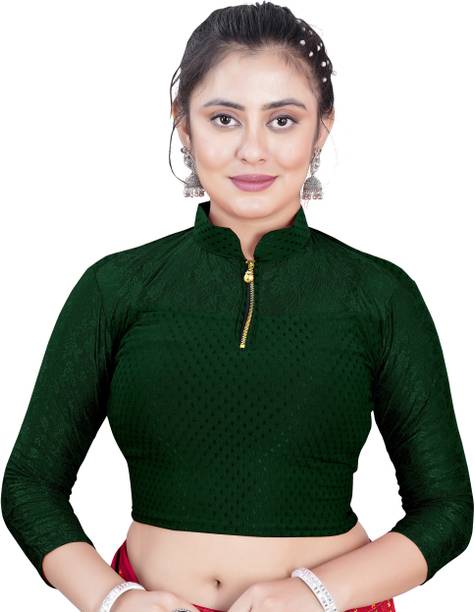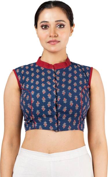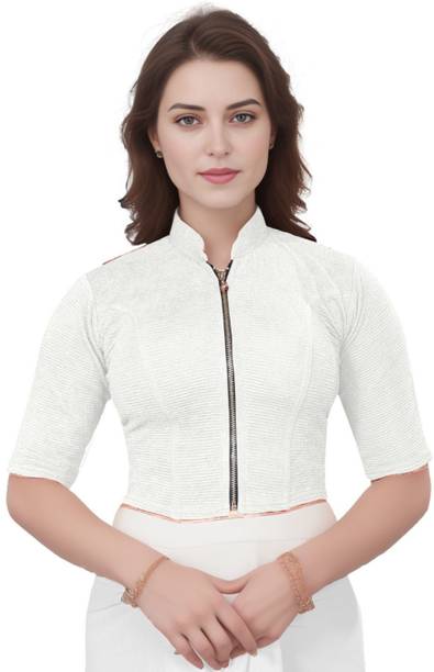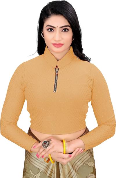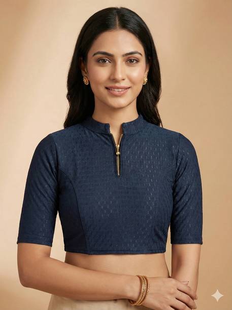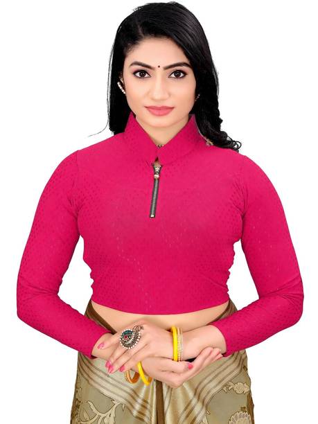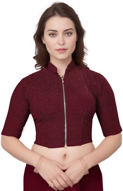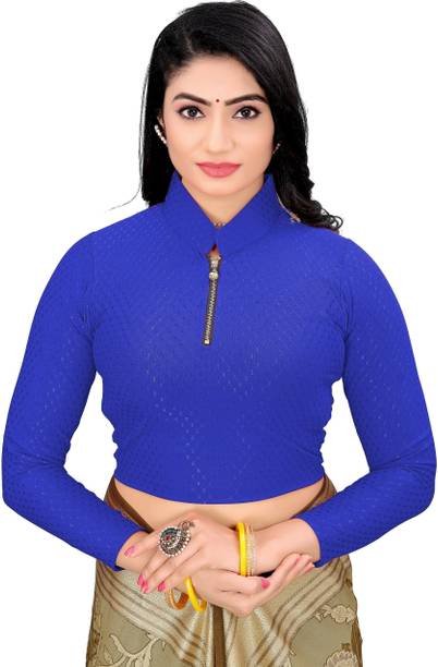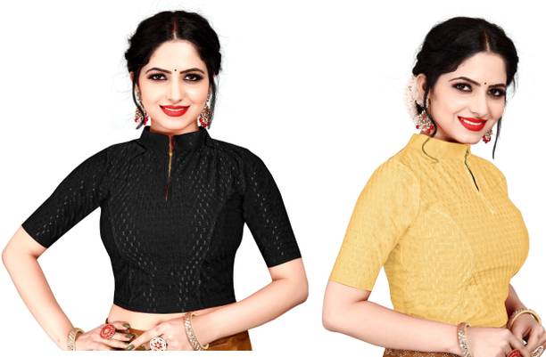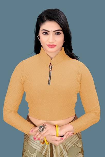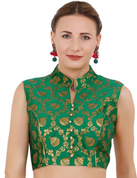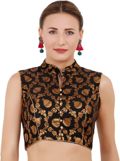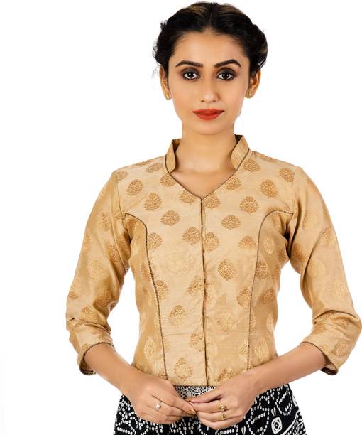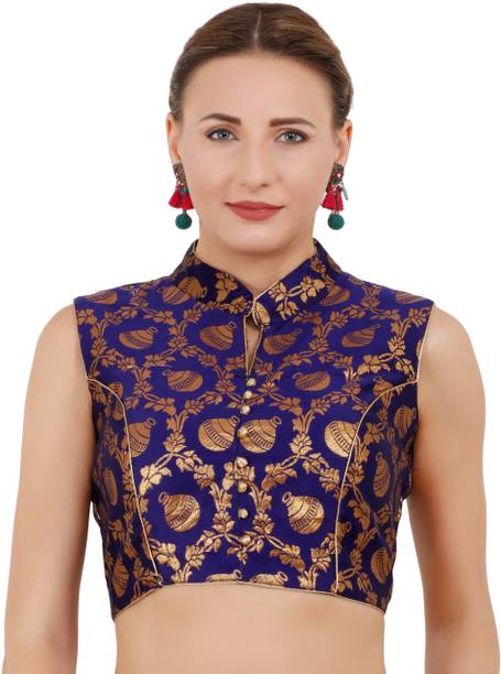 You can buy a ready-made embroidered silk blouse with a deep opening at the back and wear it with a glamorous saree to look ravishing. Select a favorite color that complements your skin tone and buy silk collar blouses online from popular brands such as, P DEZAART, Salwar Studio, Singaar and Gargi.