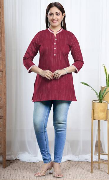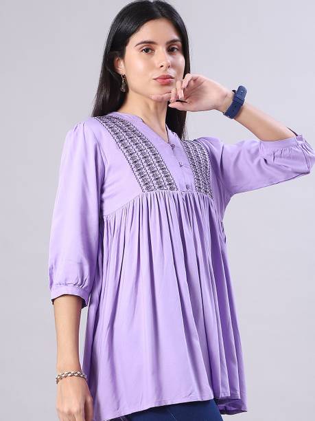 The collar neck designs for kurtis add a touch of fun and flair to your outfit. These have become one of the preferred styles of kurtis as they can be worn in both a professional and casual setting. With varying kurta lengths and sleeve lengths, you can choose the kurtis based on your comfort level, personality, occasion, season, and so on. You can check and compare the latest collar designs (for Kurtis) from popular brands like Amar Tex, Aurelia, Rangmanch by Pantaloons, MICORANCE, Dream Angel Fashion, and many more. The round, boat, square, and V- necks are a few common designs found in ethnic wear, Anarkali, A-line dresses. The closed neck designs like mandarin and high necks with coloured buttons can be paired with matching leggings to create a unique style. Regular shirt collared dresses and kurtis can be worn in formal settings. These can be paired with jackets and vests and are apt for all seasons. For a hot day, you can simply open a few buttons to create a summer look. The collared and button-down garments can work as maternity wear too. You can shop for various collar neck designs( for Kurtis) online and add them to the cart for doorstep delivery. The information you are reading has been last updated on 21-Oct-25.